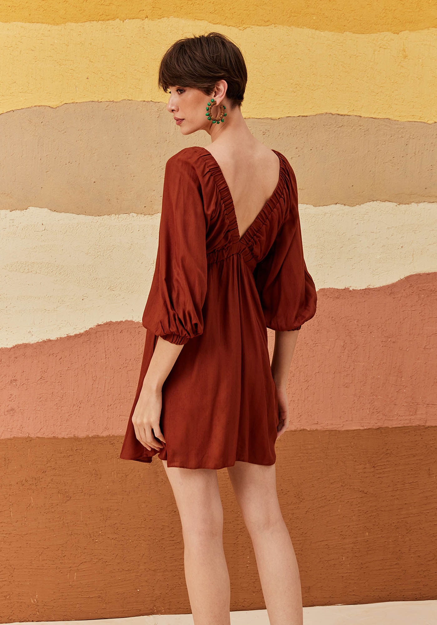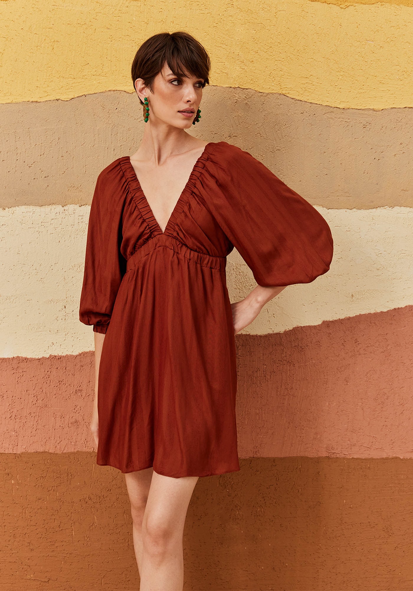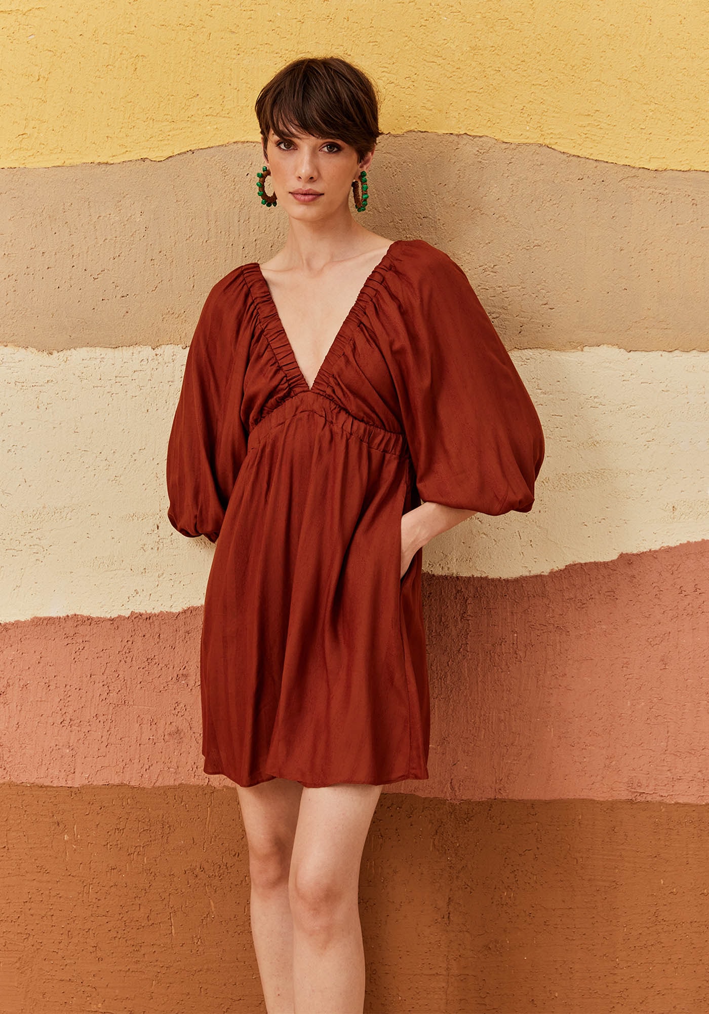 Este Vestido Curto é a combinação de estilo e leveza, indispensável em todo guarda-roupas. Sua modelagem solta garante liberdade de movimento e conforto enquanto o lastex abaixo do busto permite um ajuste ideal que valoriza a silhueta. Possui mangas ¾ bufantes que adicionam um toque romântico e feminino para a peça, enquanto o seu decote profundo em V tanto na frente como nas costas torna o modelo mais ousado. É confeccionado em 97% Viscose 3% Linho.