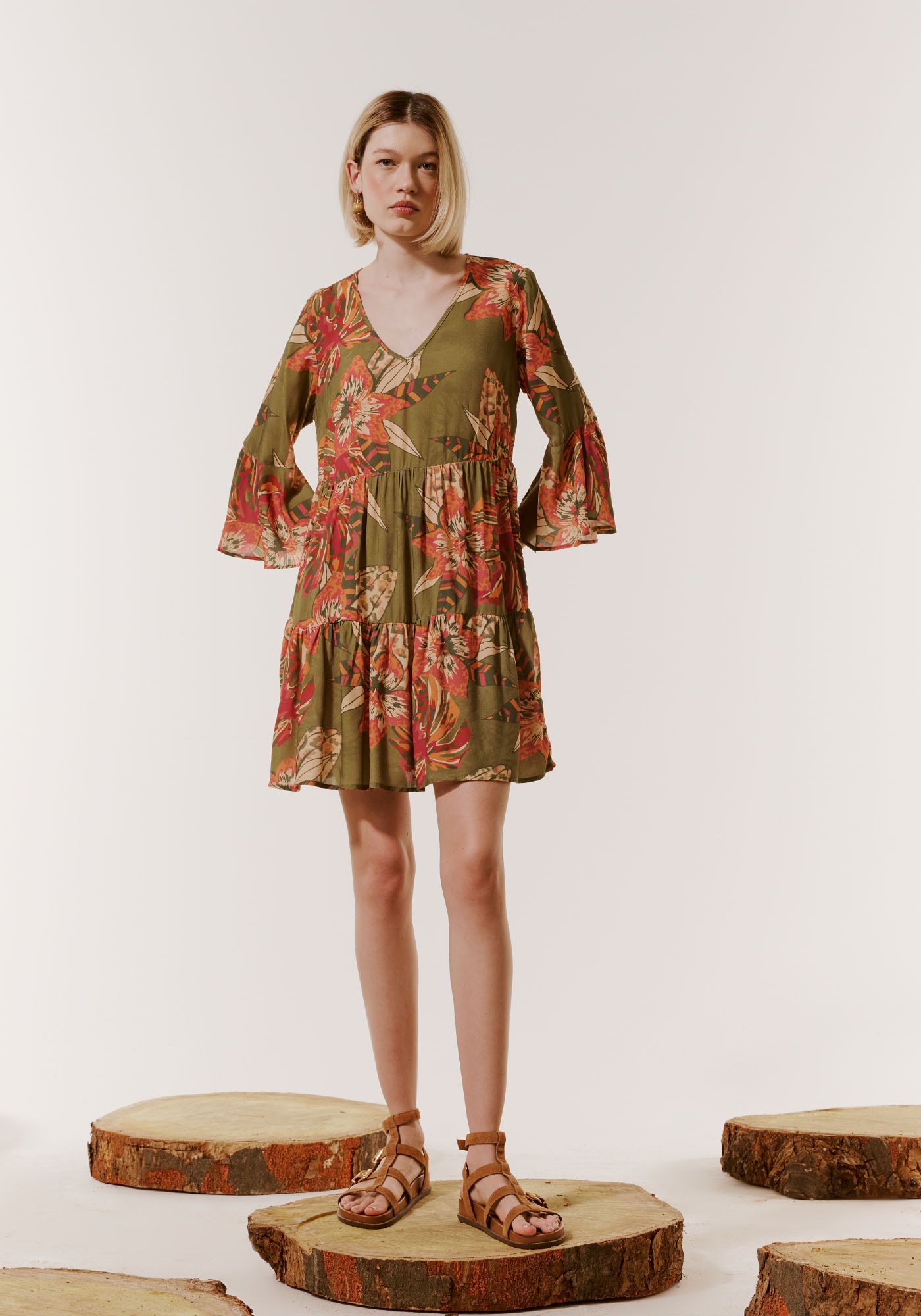 Este vestido curtoconfeccionado em 100% viscose, destaca-se pelas suas delicadas nuances. Duasmarias estrategicamente posicionadas complementam a peça, enquanto a gola V e ocharmoso babado nas mangas elevam a beleza do conjunto. Mais do que apenasestilo, esses detalhes conferem uma dose adicional de elegância e conforto àpeça, tornando-a uma escolha encantadora para diversas ocasiões.