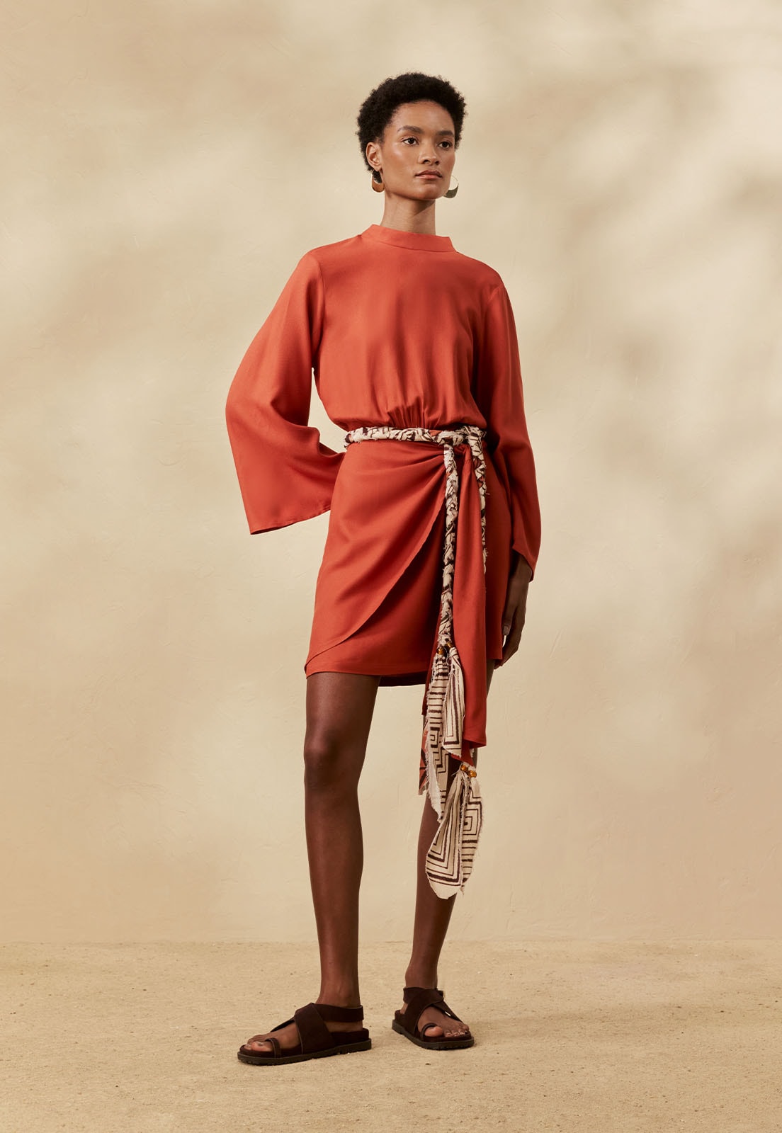 O Vestido Curto Liso Golinha da CaCay tem modelagem elegante e atemporal, com manga ampla que confere leveza e movimento. O detalhe de amarração na cintura valoriza o busto e define a silhueta de forma confortável, enquanto o ajuste no pescoço acrescenta sofisticação discreta. O caimento é solto no quadril e o comprimento acima do joelho traz equilíbrio entre praticidade e estilo. A forma é grande, então se estiver em dúvida entre dois tamanhos, opte pelo menor e consulte a tabela de medidas para precisão. A modelo da foto tem 1,75m, veste manequim 36 e está usando o tamanho P.Confeccionado em 100% viscose, o tecido é leve, sem elasticidade, e proporciona conforto prolongado para o dia a dia, trabalho ou eventos casuais, com proposta minimalista e versátil. Combine com acessórios delicados, sandálias de tiras ou uma bolsa estruturada para compor looks que transitam com naturalidade entre diferentes ocasiões.