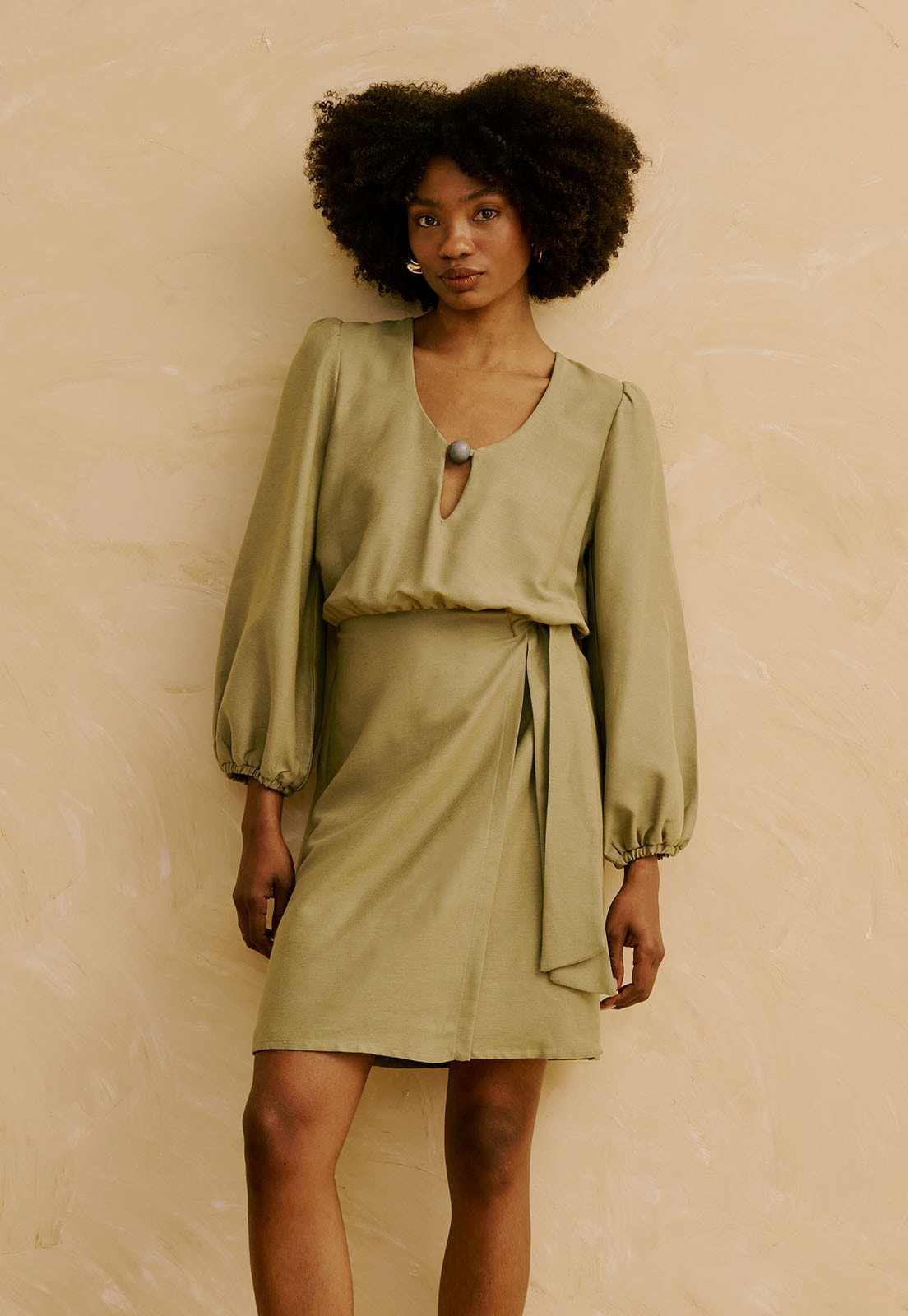 O Vestido Curto Ponteira Decote da CaCay tem modelagem fluida e elegante, com caimento suave no busto e amarração lateral na cintura, valorizando a silhueta. O elástico nas mangas garante conforto e mobilidade, enquanto o comprimento curto traz leveza ao quadril. A forma é grande. Se estiver em dúvida entre dois tamanhos, recomendamos optar pelo menor, com base na tabela de medidas. A modelo tem 1,75m, veste manequim 36 e usa tamanho P nas fotos.