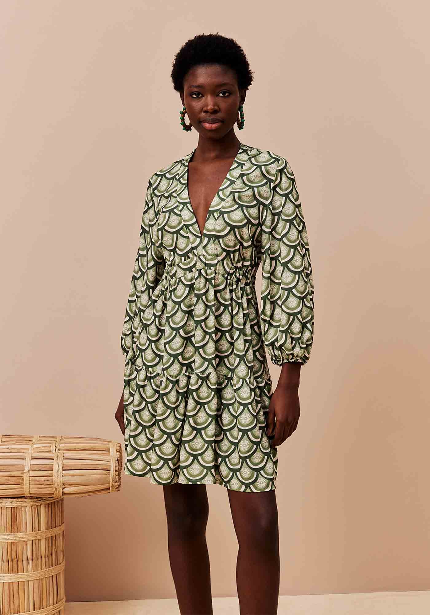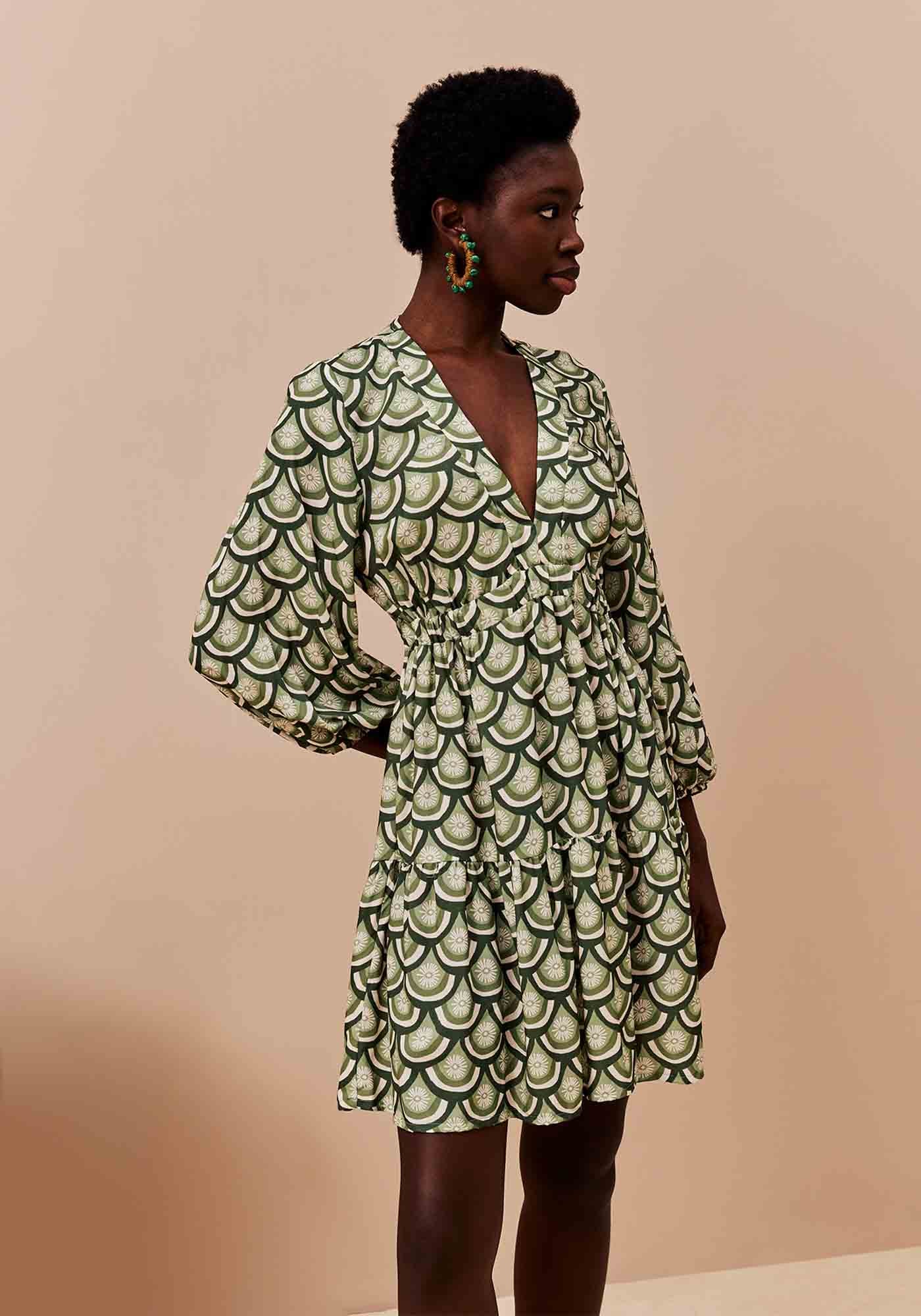 O Vestido Curto Pala Elástico é a combinação perfeita dedelicadeza e sofisticação. Com um decote em V que valoriza o colo, ele contacom mangas bufantes 7/8 e punhos em elástico, dando aquele toque romântico emoderno. A pala com elástico na cintura cria um ajuste perfeito e valoriza asilhueta, enquanto a saia com a maria na barra traz um charme extra e fluidezao movimento. Feito em 100% viscose, este vestido é leve, confortável e idealpara arrasar em qualquer ocasião, do dia a dia à eventos especiais.