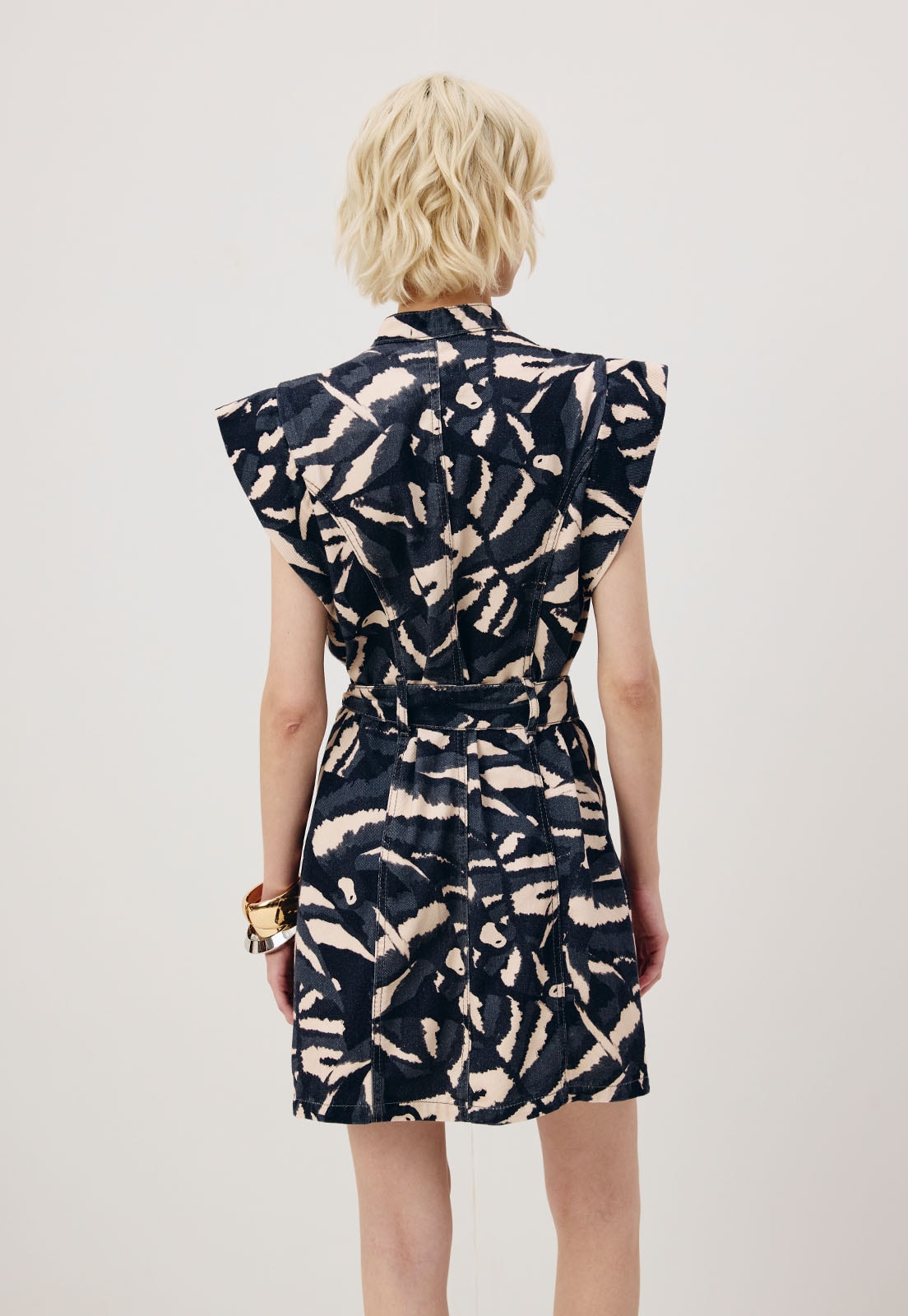 O vestido curto estampado Pararú é confeccionado em sarja 100% algodão. É um modelo moderno e estiloso, com fechamento em botões na parte da frente e manga muscletee. Também possui faixa para amarração na cintura e bolsos utilitários.