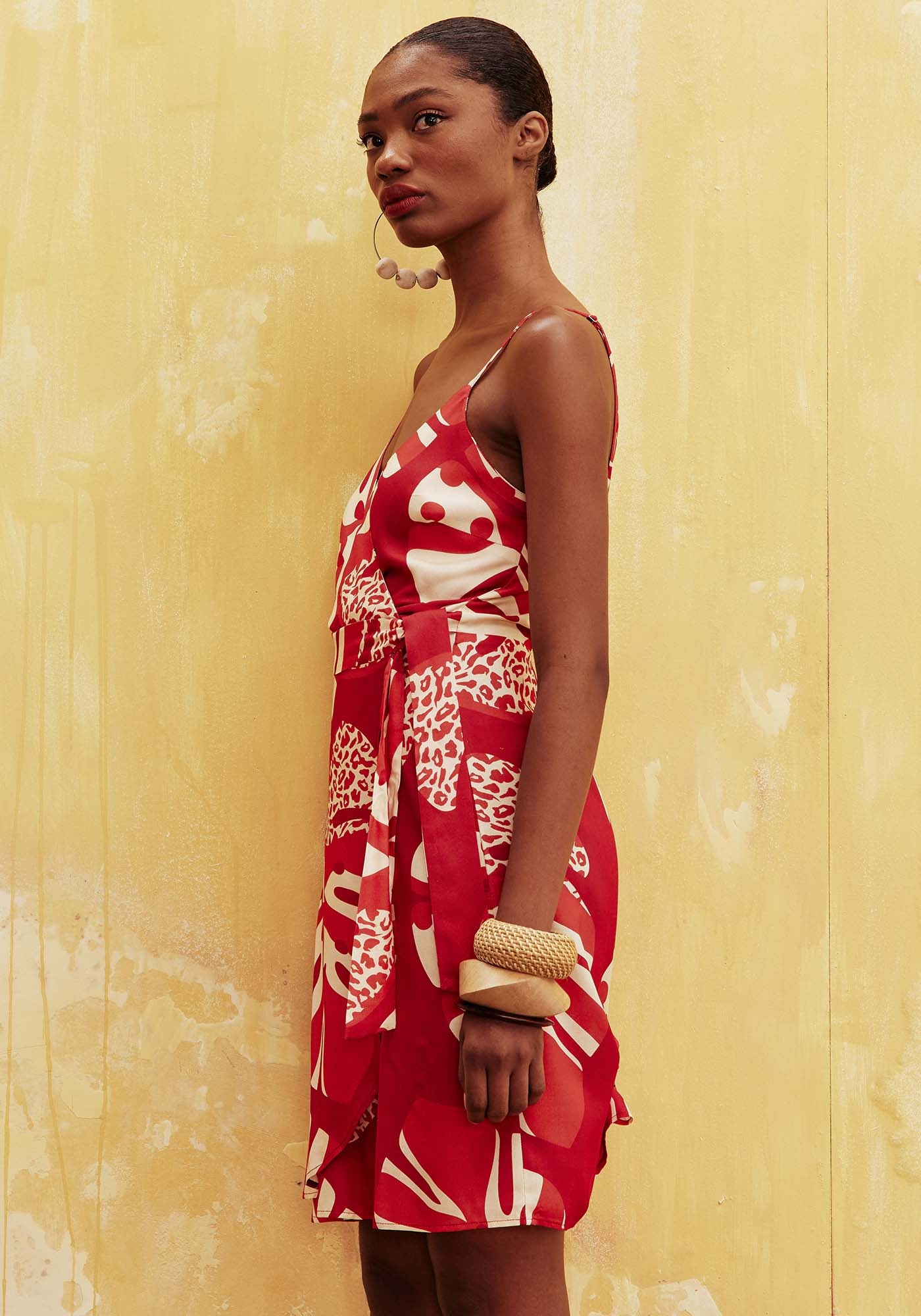 O vestido é um modelo charmoso, perfeitopara o verão. Confeccionado em tecido 100% viscose, possui alças fina e comprimentocurto. A amarração lateral da saia é um detalhe que valoriza a peça.