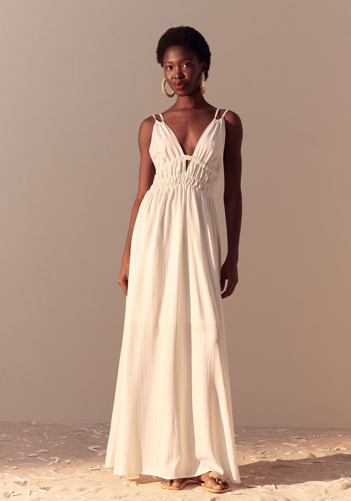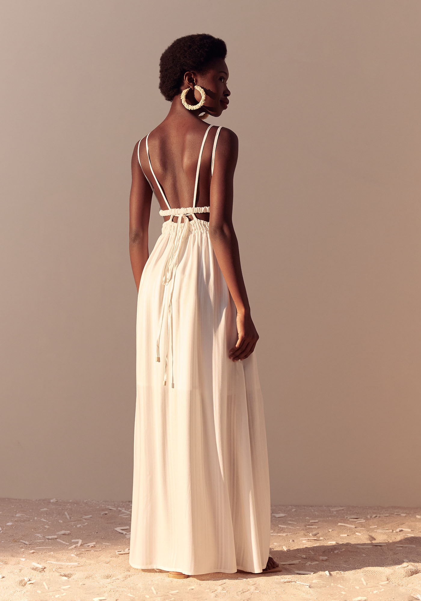 Este Vestido Longo é deslumbrantee combina sensualidade com sofisticação. Apresenta decote em V frontal quevaloriza a região do busto e nas costas decote reto com detalhe de alças emamarração. Possui elástico na cintura que além de adicionar um detalhe charmosoà peça valoriza a silhueta e promove um ajuste personalizado e confortável.Confeccionado em 100% Viscose, este modelo apresenta uma saia ampla que trazleveza e movimento. Um design único e cheio de estilo, ele é ideal paraocasiões especiais.