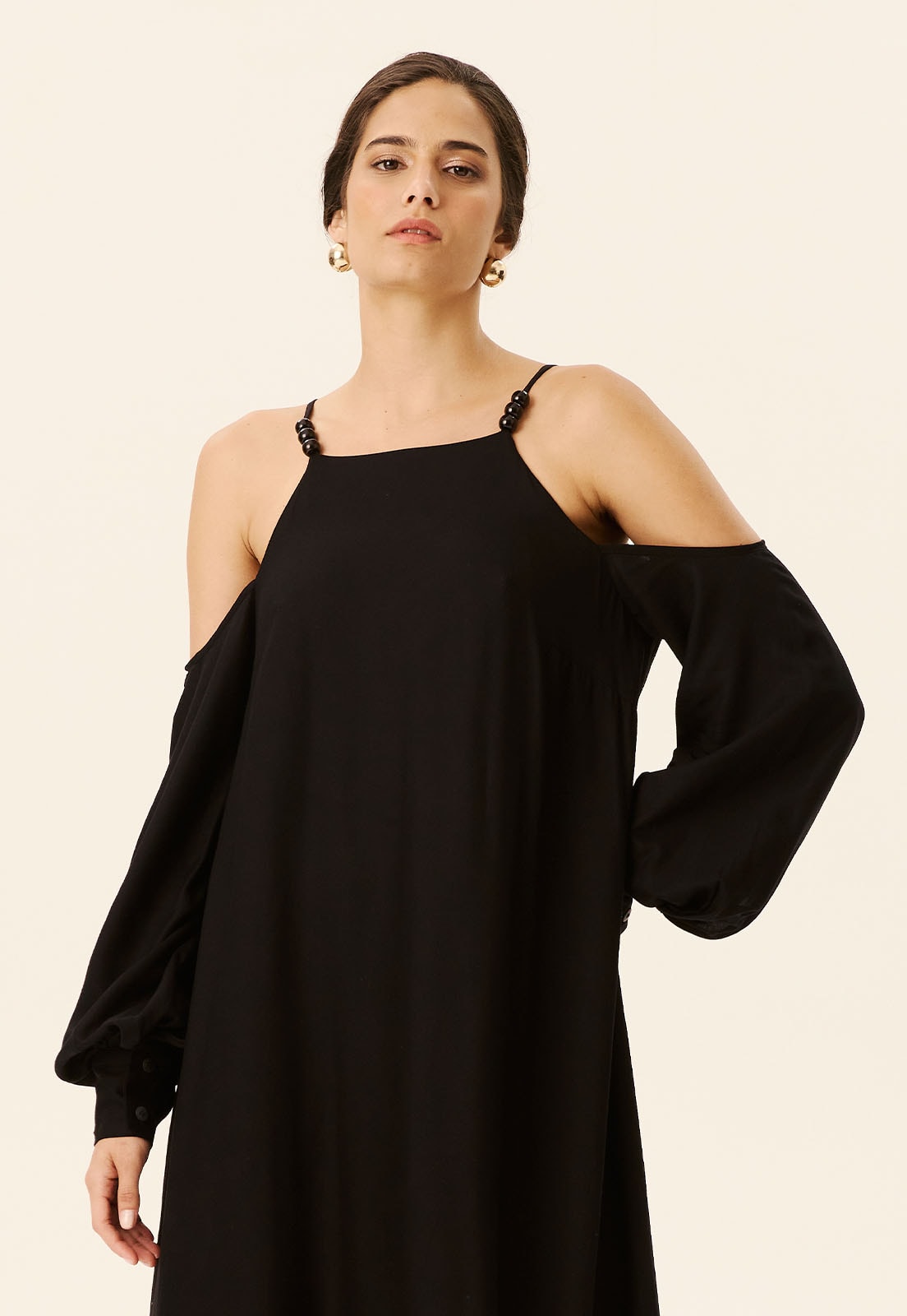 O Vestido Longo Alça Bolinha CaCay é a escolha perfeita para quem busca elegância com leveza. Confeccionado em 100% viscose, oferece caimento fluido e toque suave, garantindo conforto durante todo o dia. As alças com detalhe em bolinha adicionam um charme delicado, enquanto o design com ombros à mostra e mangas amplas cria um visual sofisticado e atemporal. Ideal para ocasiões que pedem estilo sem abrir mão da liberdade de movimento, como eventos casuais, jantares ou passeios ao ar livre.