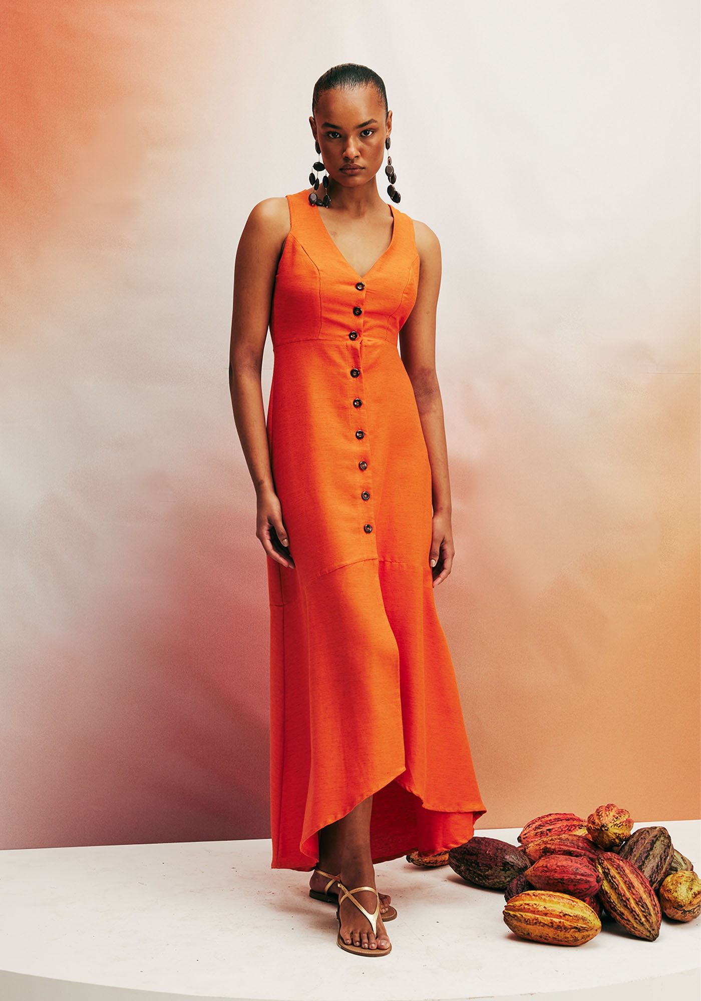 Cheio de encanto e detalhes distintos, estevestido longo apresenta botões e uma abertura frontal que conferem um toque singularà peça. Com uma cor vibrante que realça a beleza e autenticidade de quem oveste, este vestido é perfeito para diversas ocasiões, proporcionando umapresença marcante e elegante.