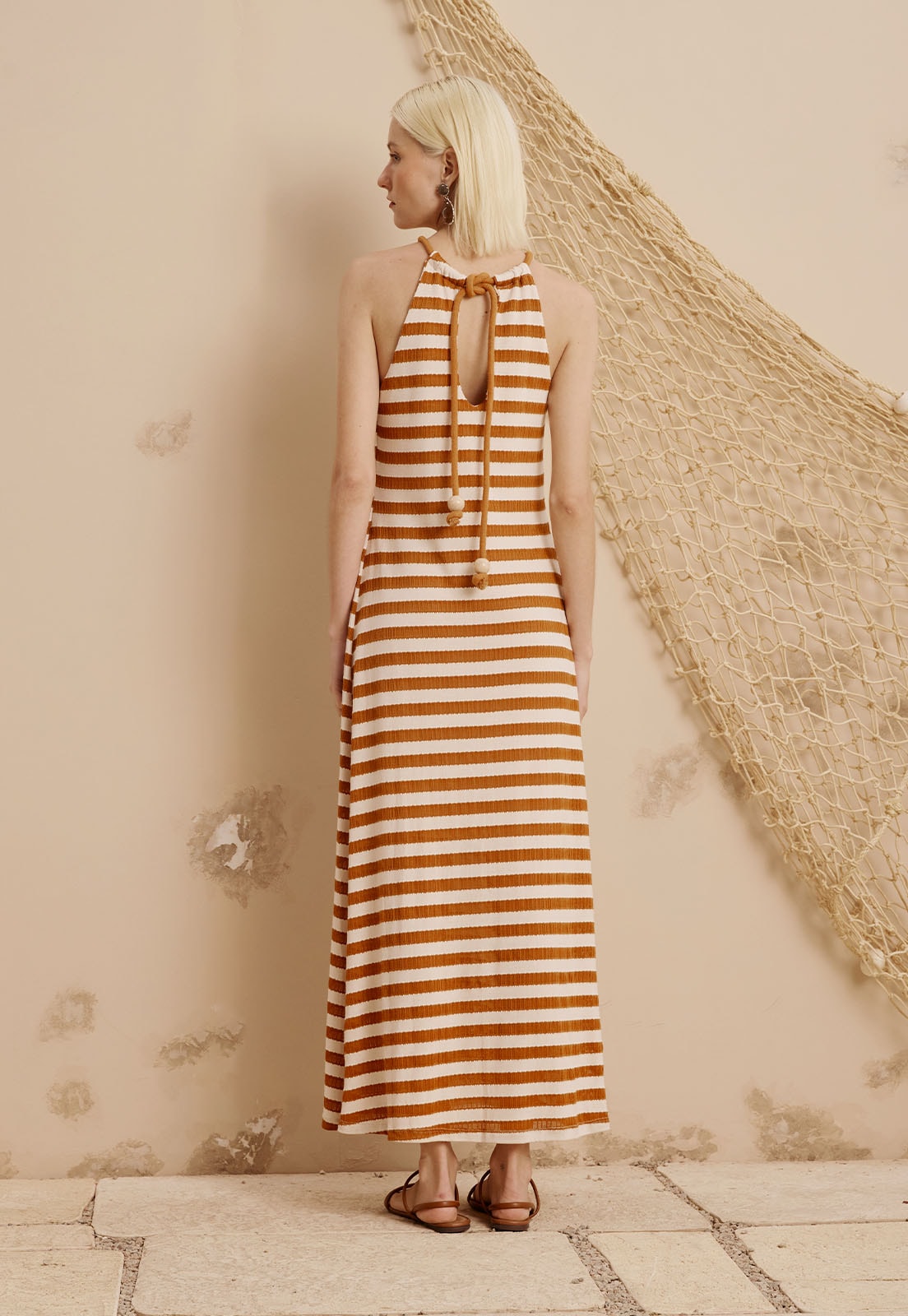 O Vestido Longo Amarração Corda CaCay é a escolha perfeita para quem busca elegância com leveza. Com modelagem fluida e caimento impecável, valoriza a silhueta sem perder o conforto. O detalhe de amarração em corda no decote adiciona um toque artesanal e sofisticado, enquanto a estampa em listras cria um visual moderno e atemporal. Confeccionado em tecido de alta qualidade (62% viscose, 37% poliéster e 1% elastano), garante frescor e movimento, ideal para dias quentes ou ocasiões descontraídas.