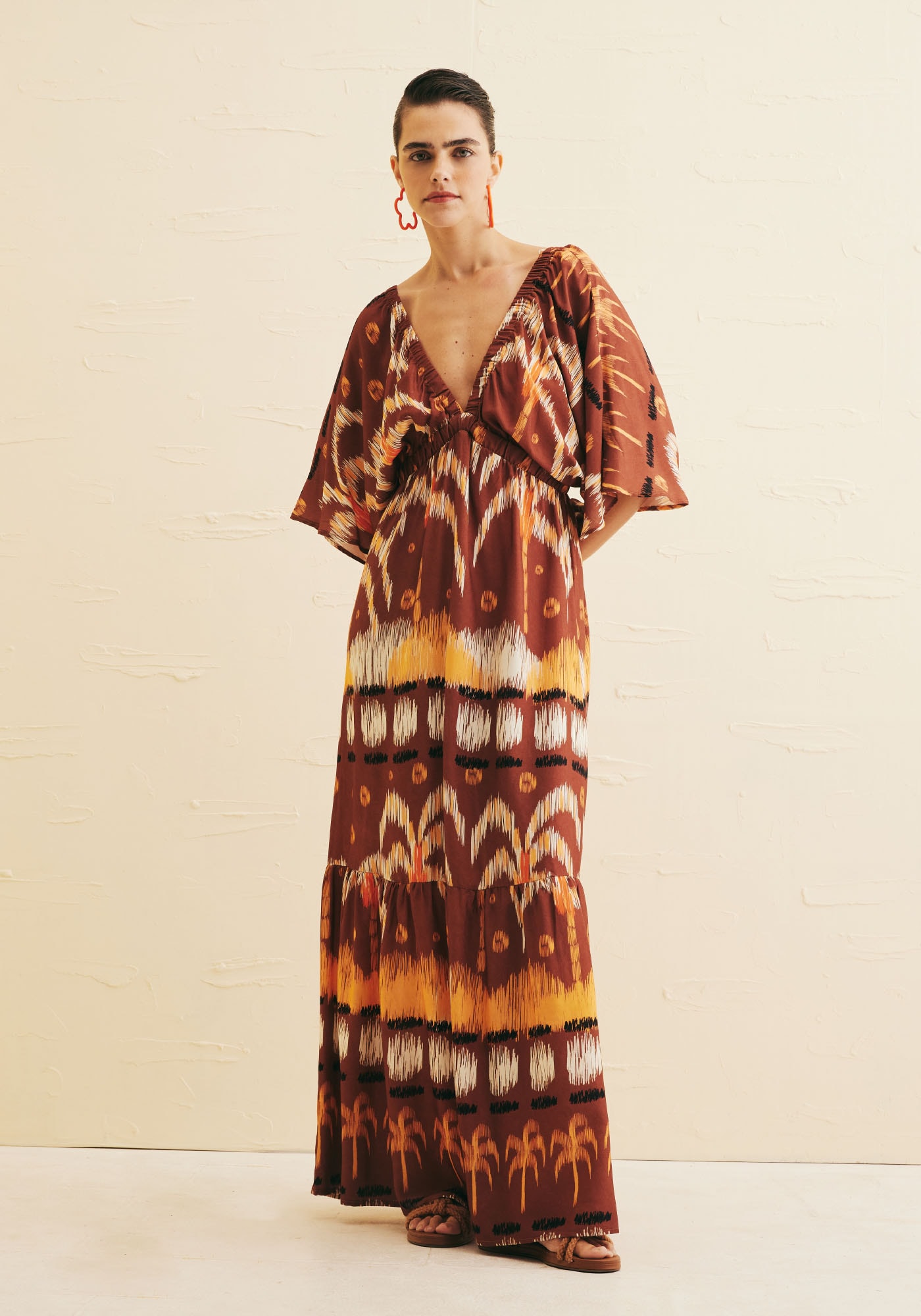 Traga a elegância e levezapara seu look de verão com o Vestido Longo Babado Est Huacachina. Seu decoteprofundo em V tanto na parte frontal como nas costas juntamente às suas mangasamplas e saia evasê com uma maria na barra combinam perfeitamente asensualidade com romantismo. Elaboradoem 100% viscose, este vestido possui túnel com elástico tanto no decote comoabaixo do busto, valorizando sua silhueta e mantendo o conforto.