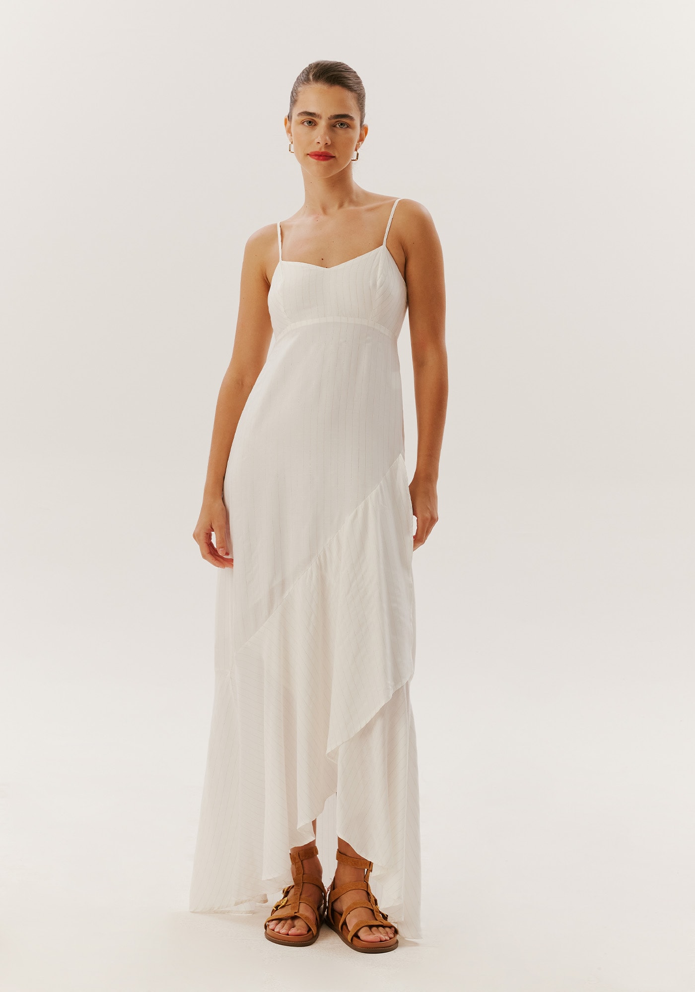O Vestido Longo com Babado naFrente é simplesmente perfeito! Clássico e sofisticado ao mesmo tempo, essa é umapeça chave no guarda-roupa.
