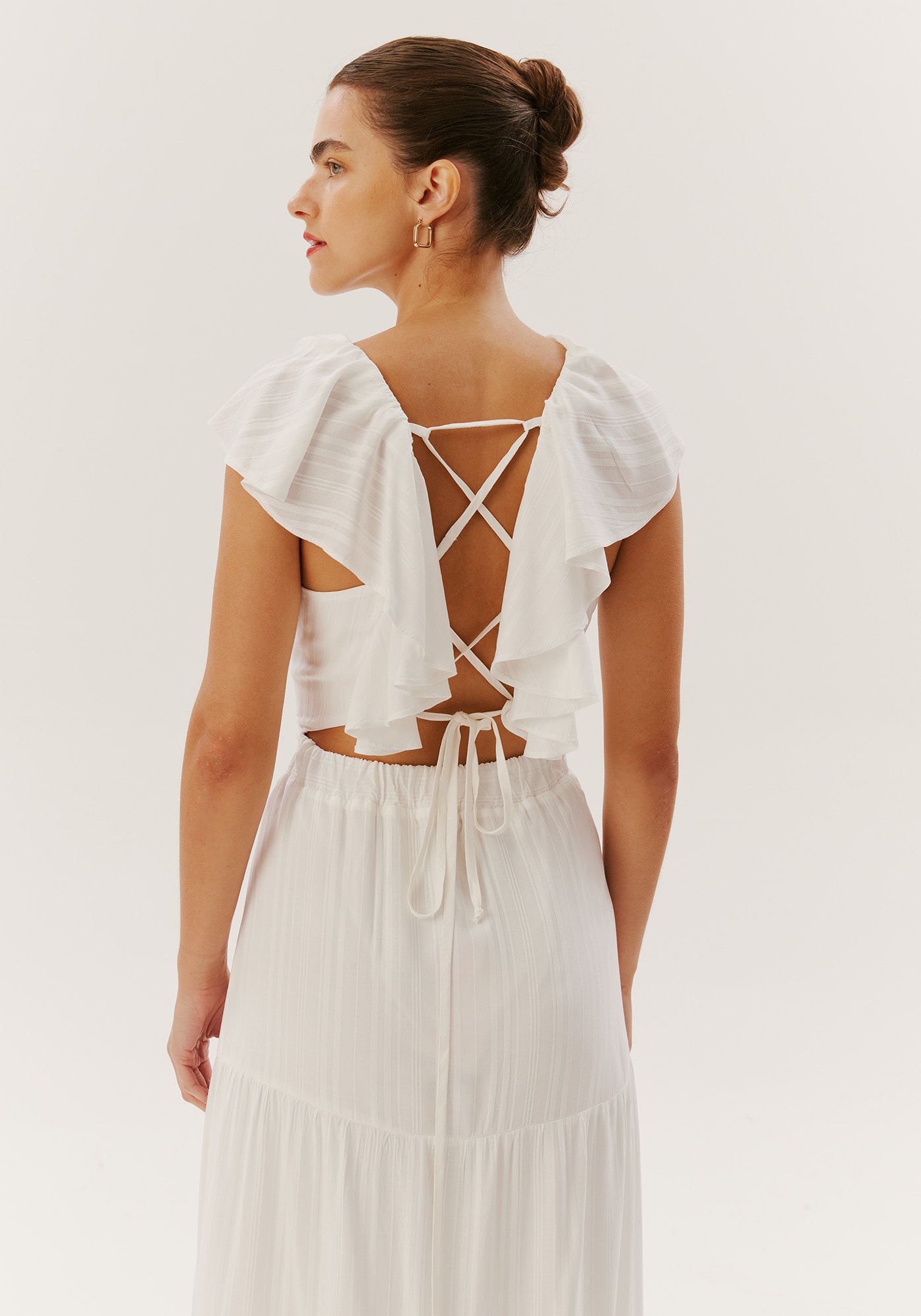 Confeccionado em tecido 100% poliéster, o modelo possuio decote mais justo ao corpo e um recorte na parte da frente, o que deixa apeça mais moderna. A cintura é marcada na parte da frente e possui lastex naparte de trás, proporcionando mais conforto para quem usa. A parte de trásmerece destaque, com a amarração cruzada que deixa as costas à mostra.