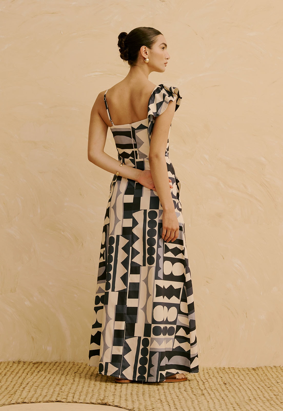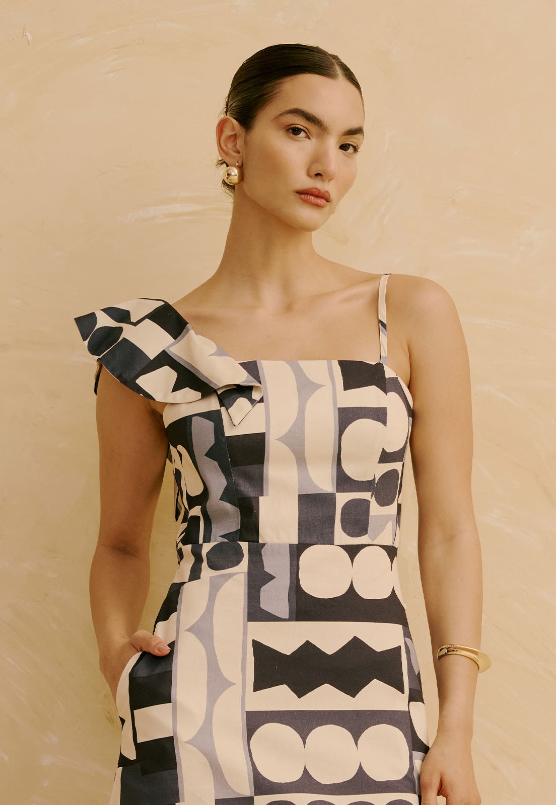 Confeccionado em 100% algodão, o tecido é encorpado e oferece conforto prolongado para o dia a dia, trabalho ou eventos casuais. A estampa geométrica traz um toque artístico e atemporal, ideal para quem busca estilo com personalidade. Combine com acessórios dourados, sandálias de tiras ou uma jaqueta leve para dias mais frescos.