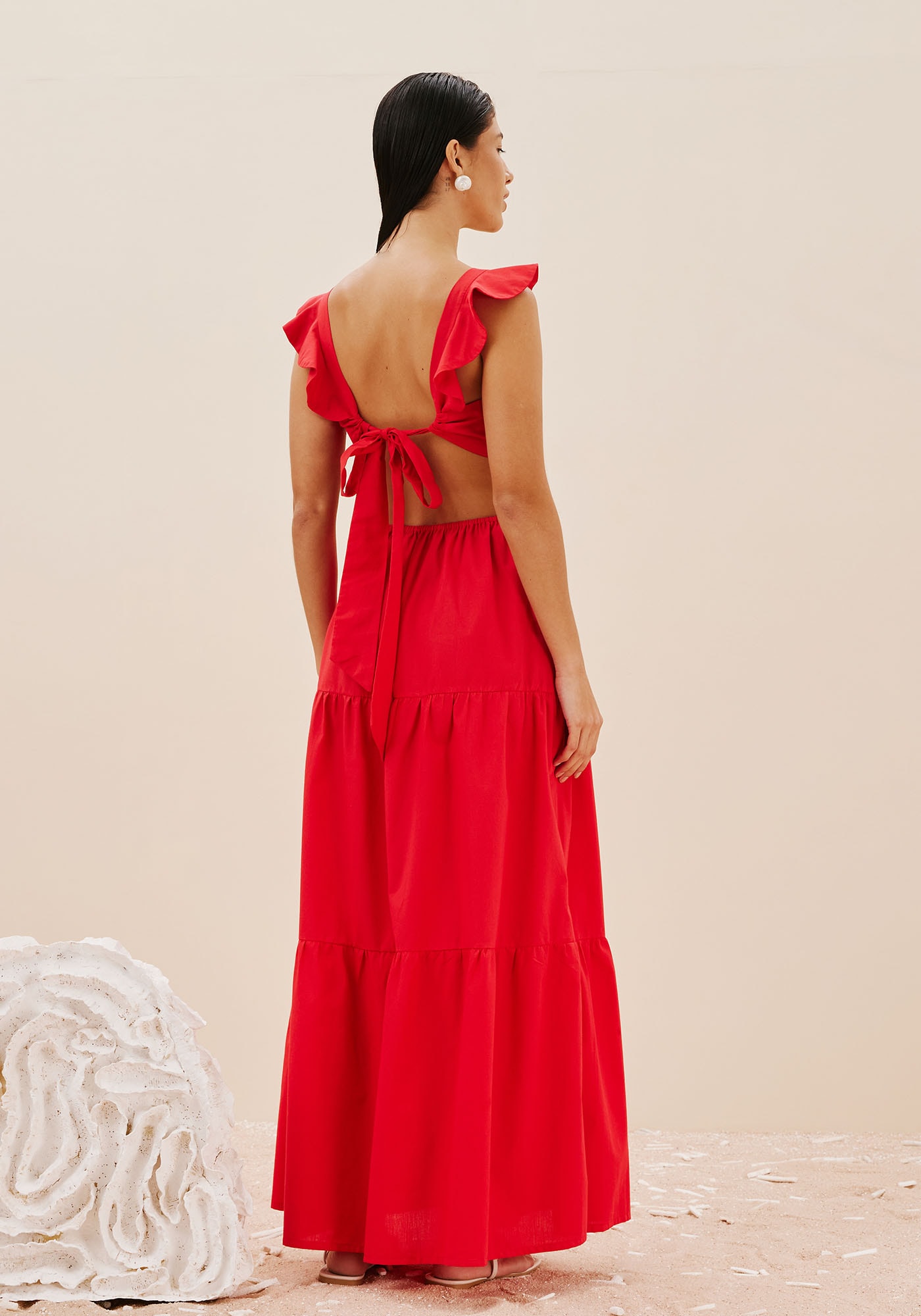 Delicado e feminino, este VestidoLongo se destaca pelo babado nas alças e por sua saia ampla com duas marias. Odecote quadrado é clássico e sofisticado, enquanto o recorte na cintura trazmodernidade e valoriza a silhueta. Apresenta elástico na cintura na parte dascostas para mais conforto e alças com amarração que adicionam um detalhecharmoso além de permitir um ajuste personalizado. Sua composição é de 100%Algodão.