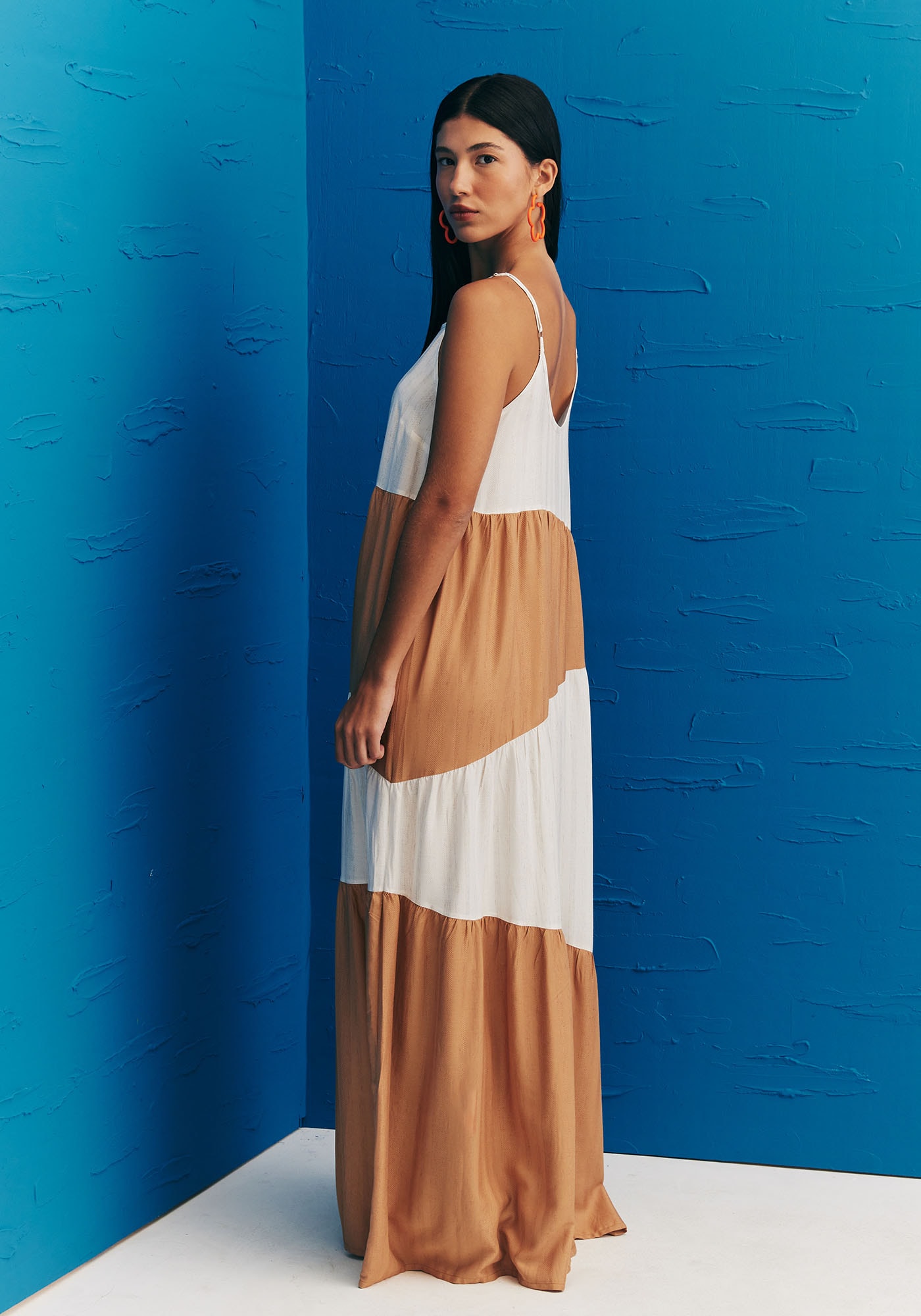 O Vestido Longo Bicolor MariasAssimétricas Liso é sinônimo de elegância, modernidade e estilo. Seu decotequadrado e alças finas trazem sofisticação e valorizam o colo, enquanto suasmarias assimétricas trazem um ar contemporâneo e estiloso à peça. Sua modelagemampla proporciona conforto, e seu decote redondo na parte das costas adicionamais um detalhe à peça. É confeccionado em tecido de composição 97% Viscose 3%Linho.