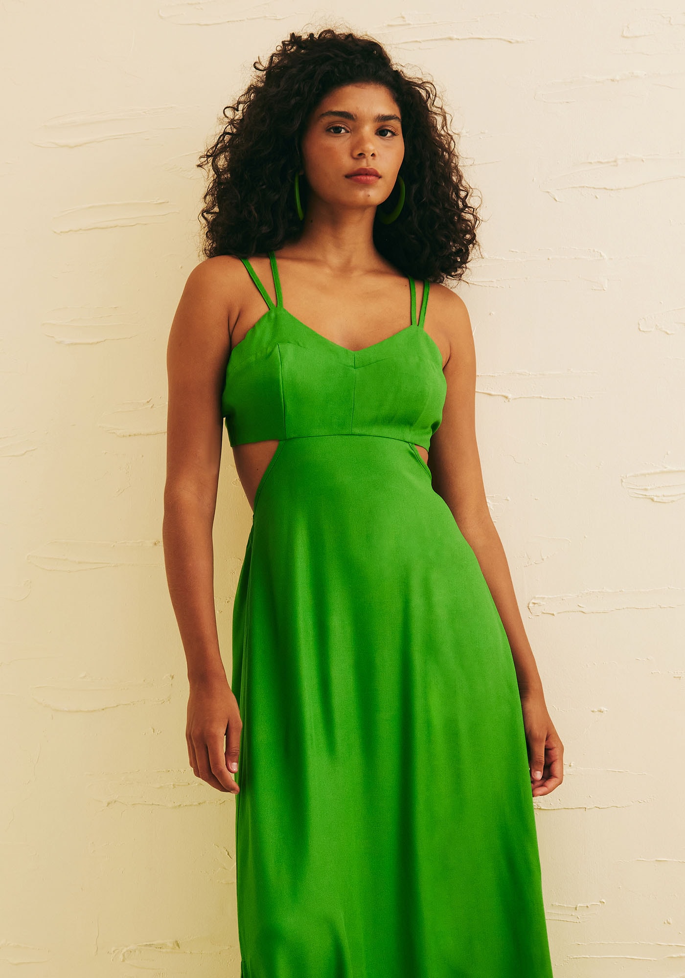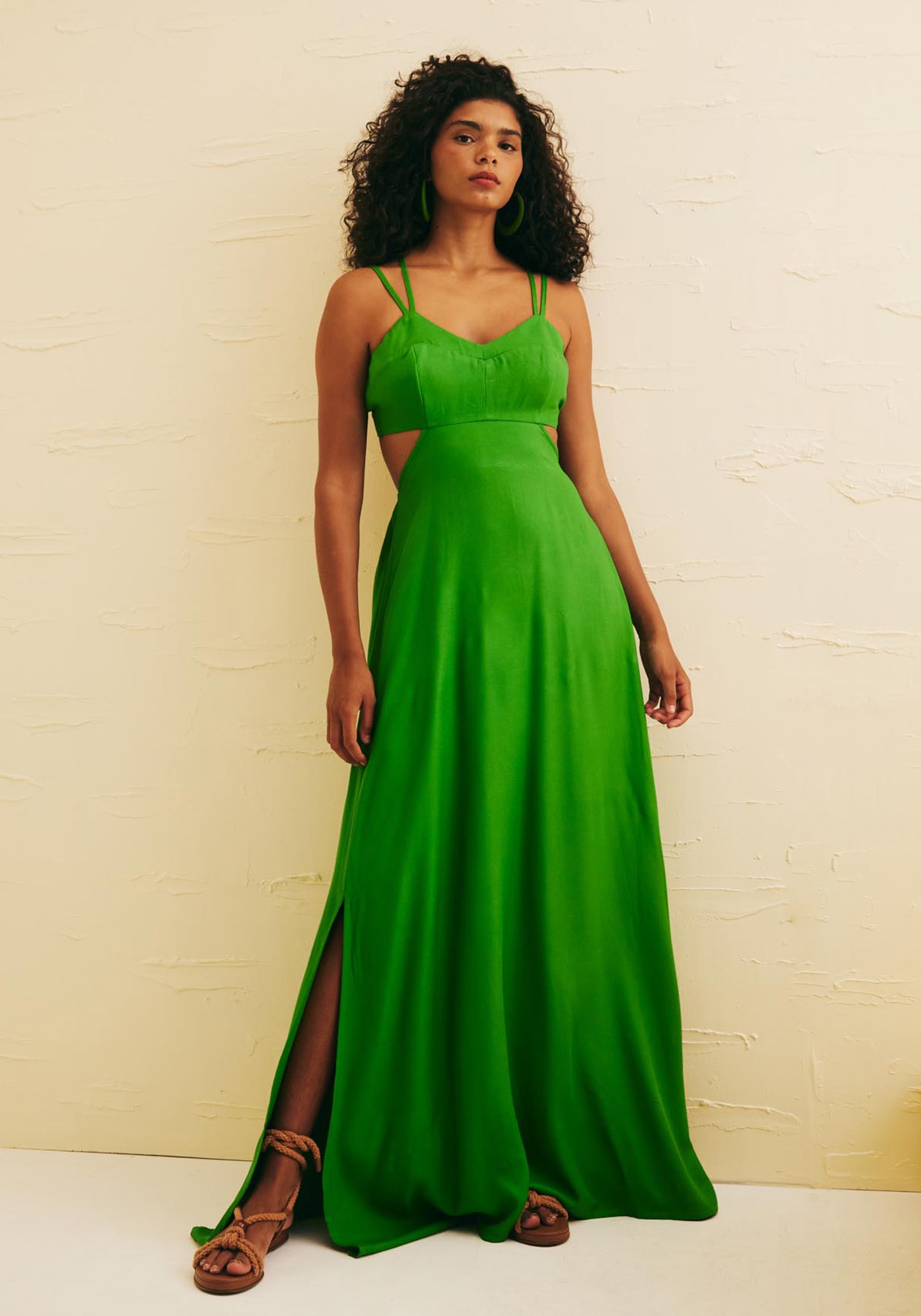 Este Vestido Longo é sinônimo deleveza e sofisticação. Confeccionado em 100% viscose, ele possui uma saia demodelagem ampla com fendas na lateral que além de proporcionar um visual fluidooferece conforto e liberdade de movimento. Apresenta alças finas duplas eajustáveis e recortes vazados na região da cintura que evidencia a silhueta.Para mais conforto possui elástico nas costas e detalhe em amarração cruzadaque traz um estilo único.