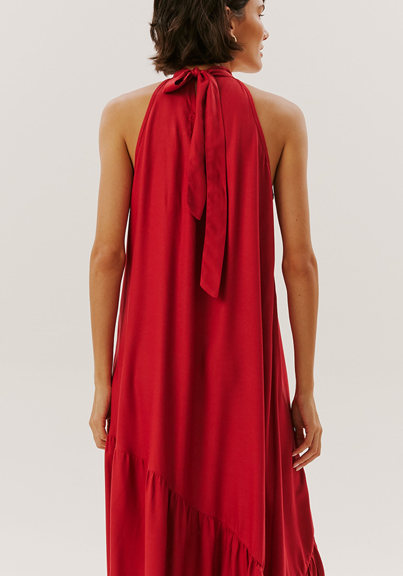 O vestido longo com decote alto é pura elegância. É uma peça quenão passa despercebida onde você for.
