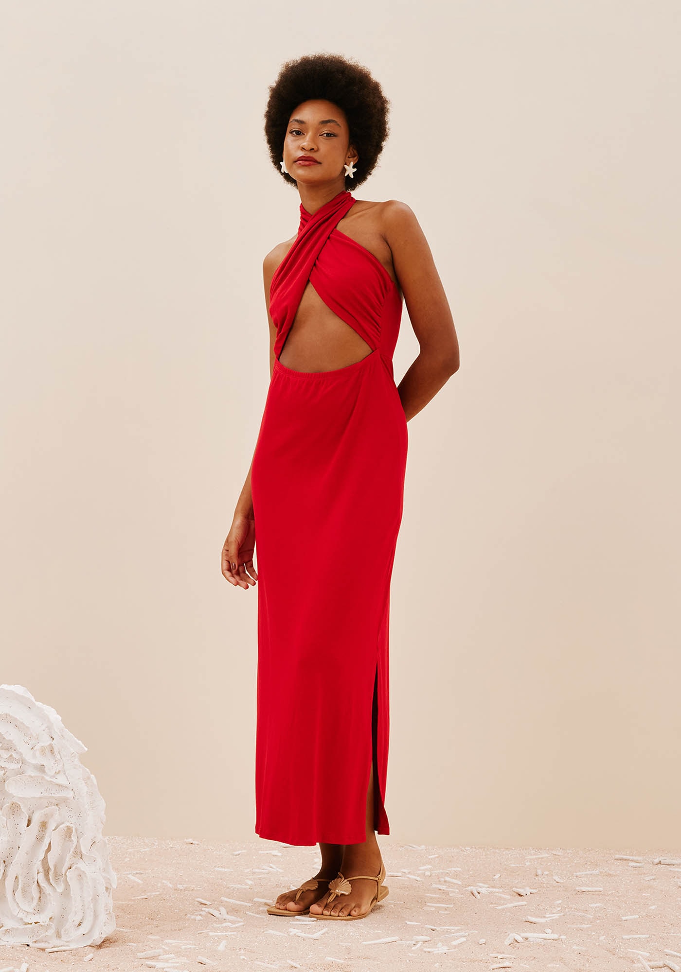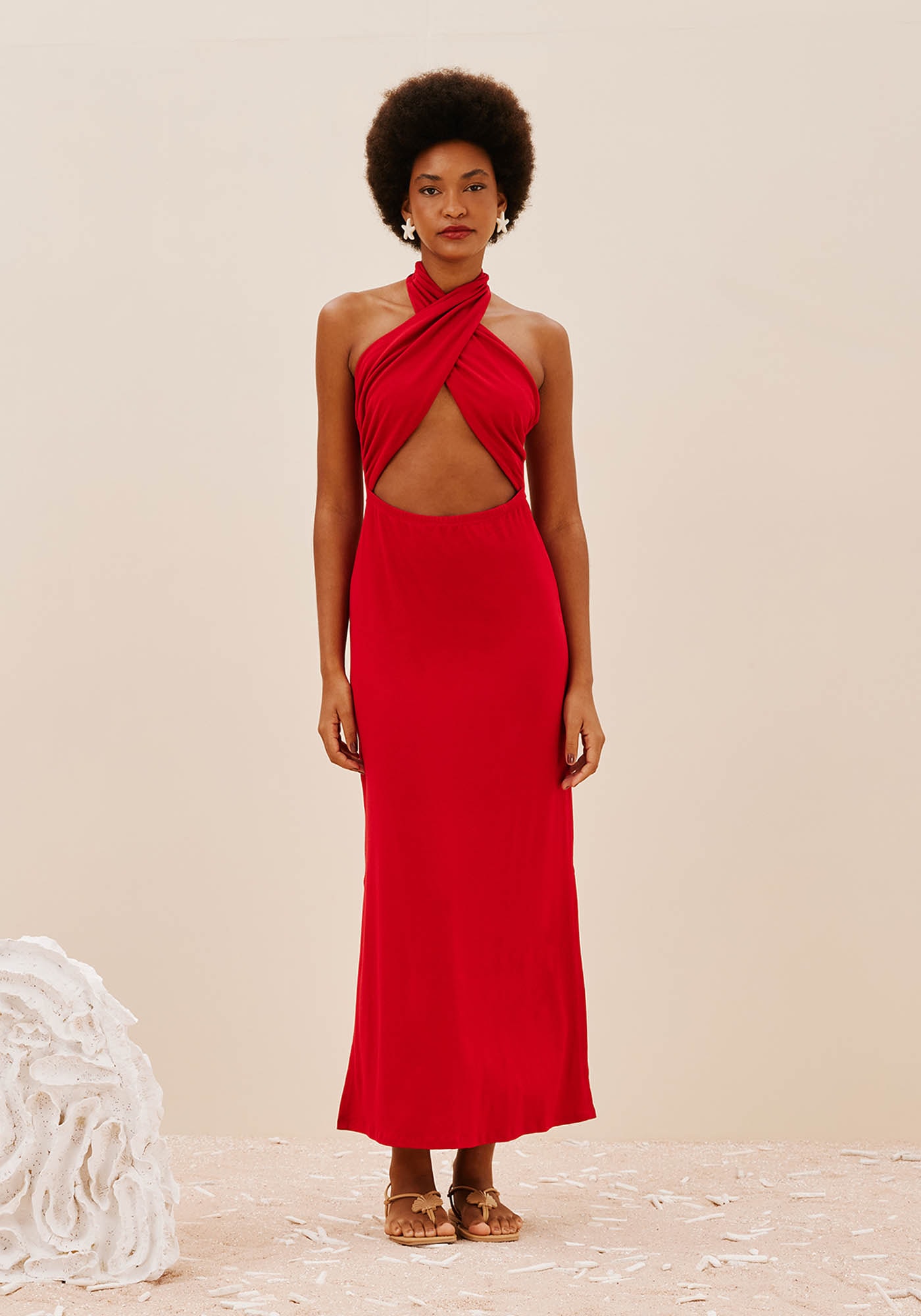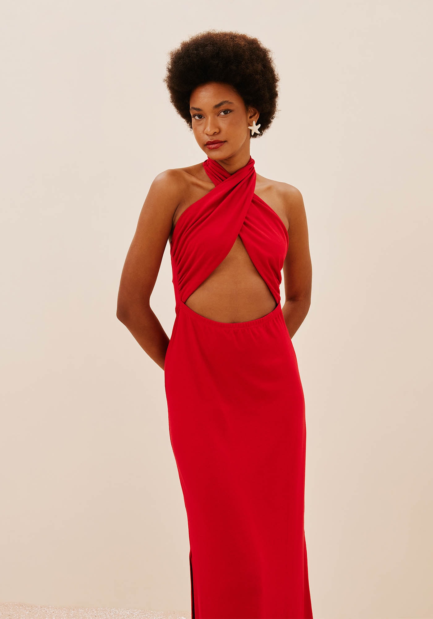 O vestido liso com decote cruzadoé um modelo sexy e ousado. Confeccionado em malha 96% viscose 4% elastano,possui um shape ajustado, que valoriza a silhueta e as curvas do corpo. Odecote cruzado com amarração no pescoço e o recorte frontal são detalhes marcantesdo vestido.