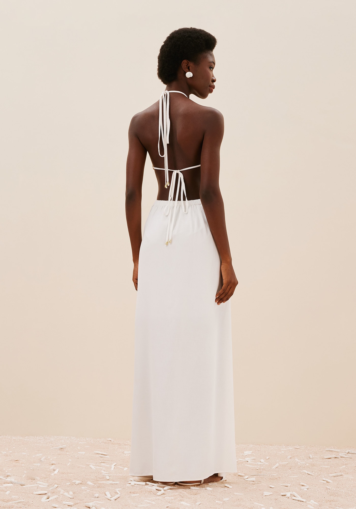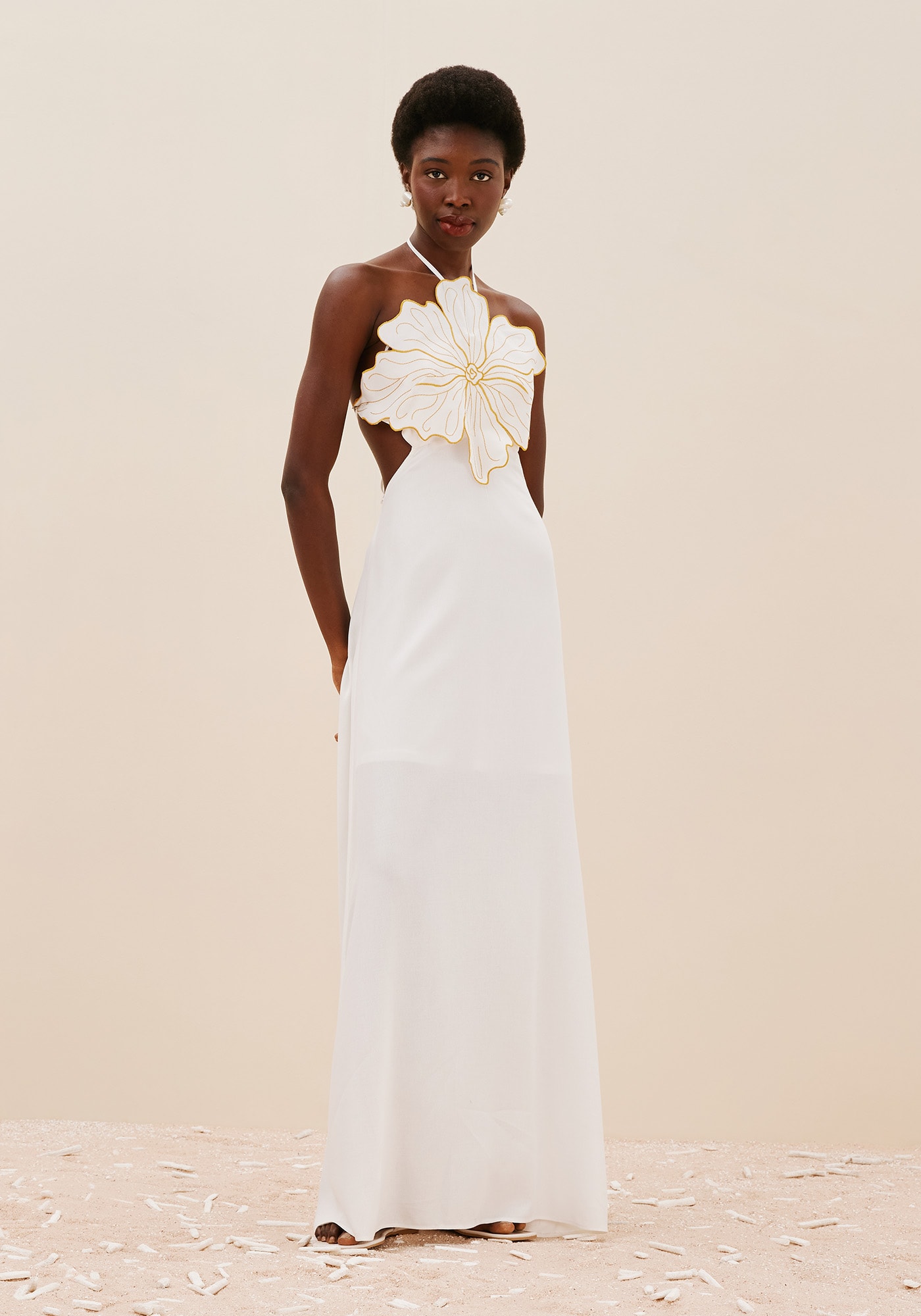 O vestidolongo liso é deslumbrante. Confeccionado em tecido 100% viscose, a peça é sofisticadae possui um decote belíssimo em flor, que é uma verdadeira joia. A modelagemcom recortes laterais valoriza as curvas do corpo e o decote nas costas dá umtoque ousado, mas elegante.