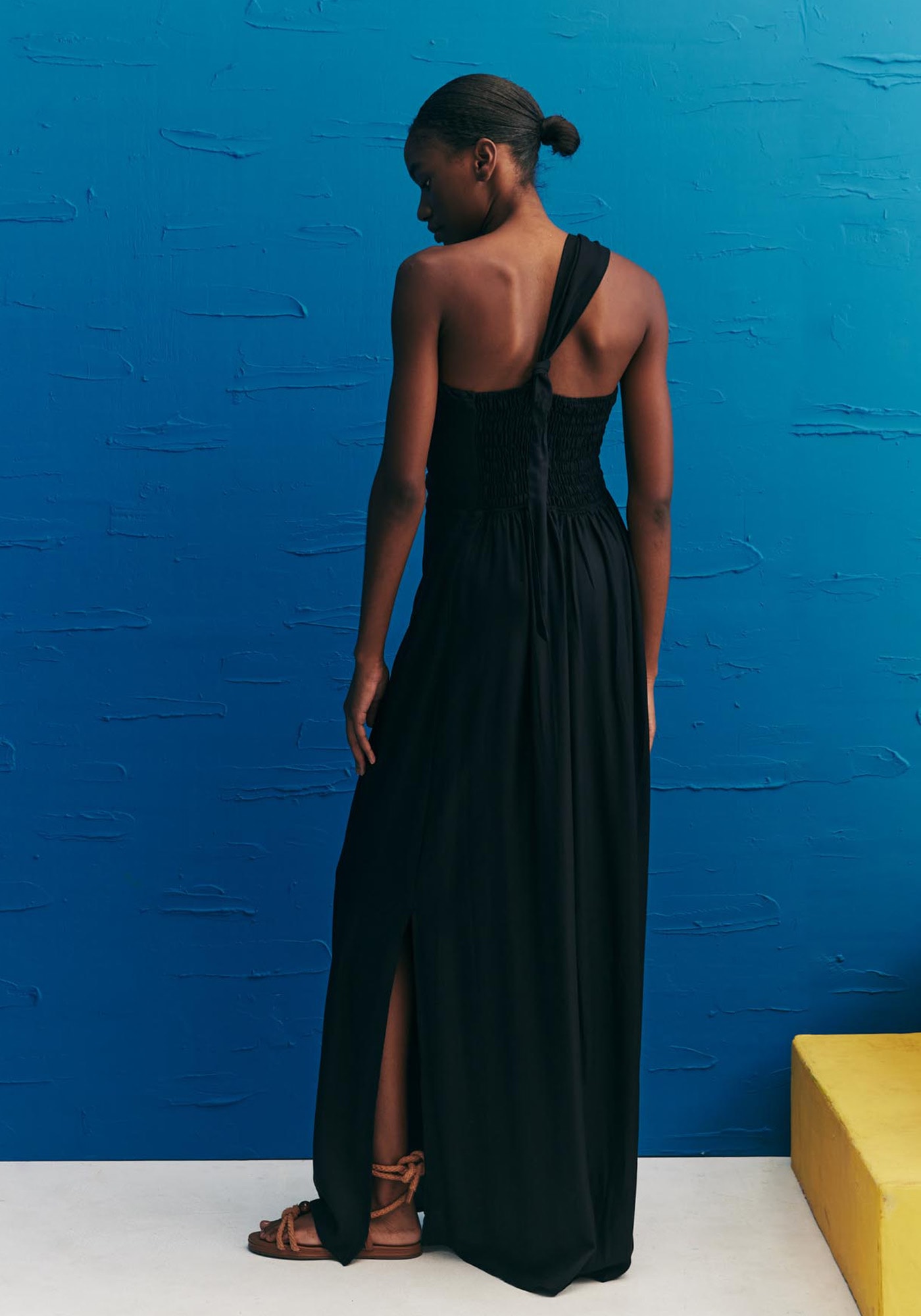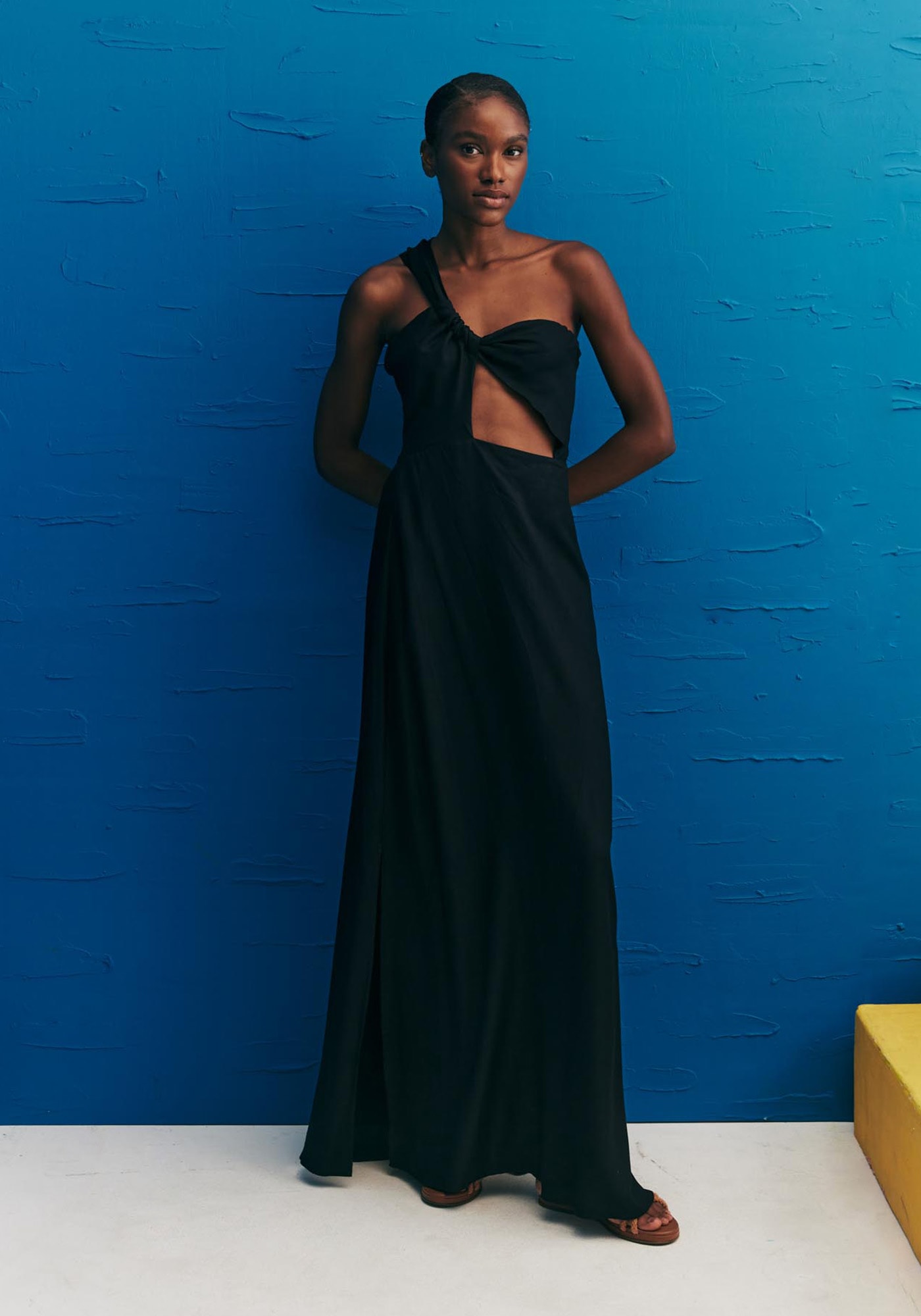 O Vestido Longo Decote Túnel é uma peça que une elegância com um estilo moderno. Apresenta um design diferenciado, com um decote de um ombro só de ajuste em túnel de amarração nas costas e recorte triangular assimétrico abaixo do busto na parte frontal que traz um estilo único e estiloso. A saia ampla e leve proporciona um caimento impecável. Com lastex nas costas e composição de 100% viscose, é a escolha perfeita para um visual elegante e confortável.