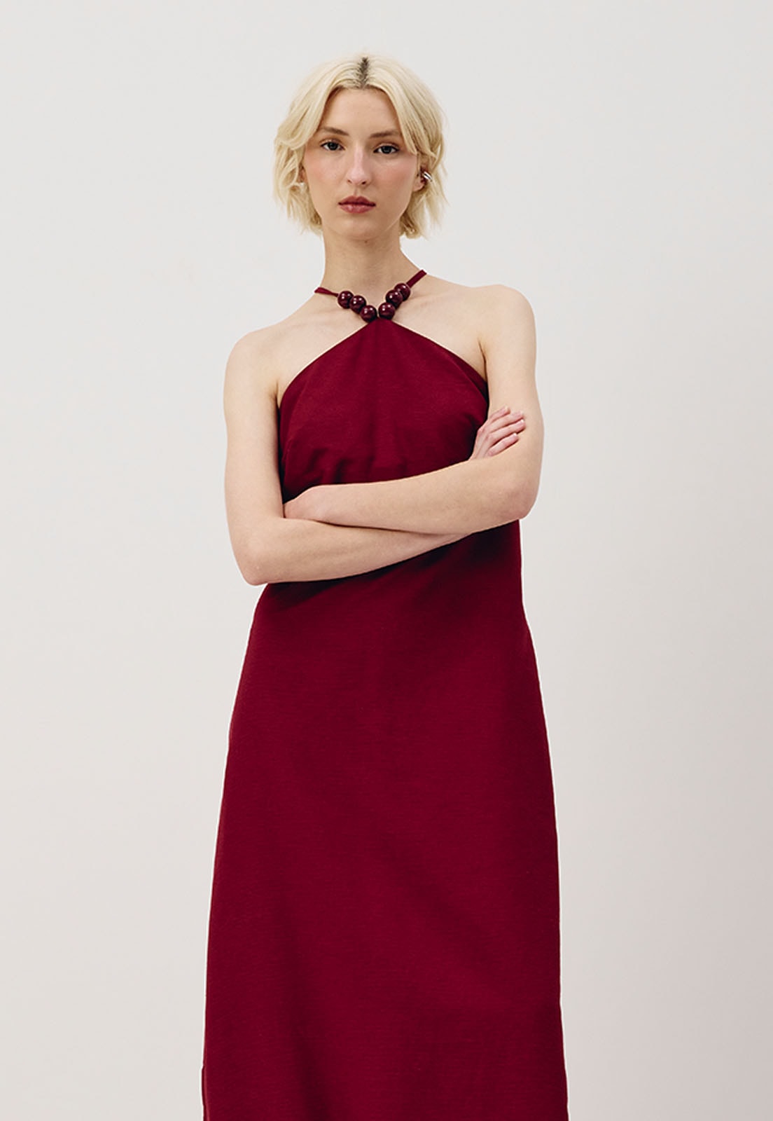 O Vestido Longo Detalhe Contas Decote da CaCay é a escolha perfeita para quem busca sofisticação com leveza. Com design fluido e caimento impecável, seu comprimento até o chão valoriza a silhueta, enquanto o decote halter com amarração no pescoço garante elegância atemporal. Os detalhes em contas aplicadas no decote e nas tiras traseiras adicionam um toque artesanal e refinado, ideal para ocasiões especiais ou eventos ao ar livre. A composição em algodão, viscose, modal e linho oferece conforto térmico e toque suave, tornando-o uma peça versátil para diferentes climas e momentos.