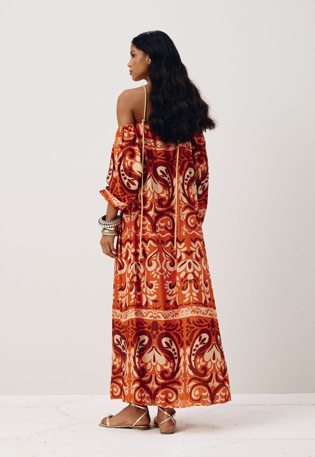 Com mangas amplas e modelagem que valoriza diferentes silhuetas, este vestido longo é versátil e atemporal. Combine com sandálias rasteiras para um look casual chic ou aposte em acessórios dourados e bolsa para uma produção mais sofisticada.