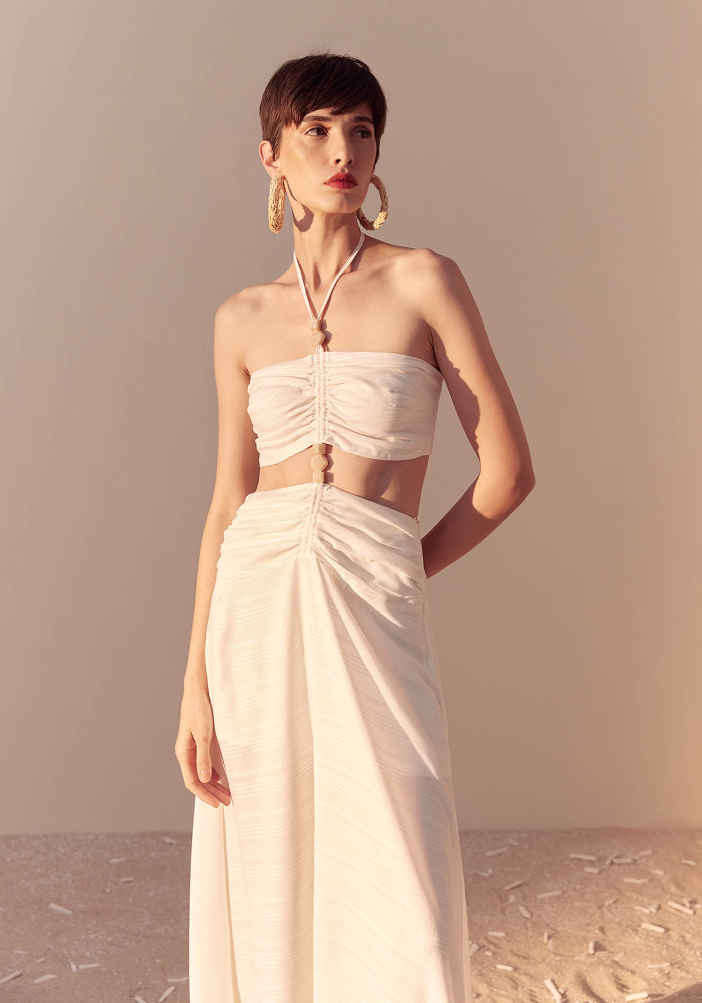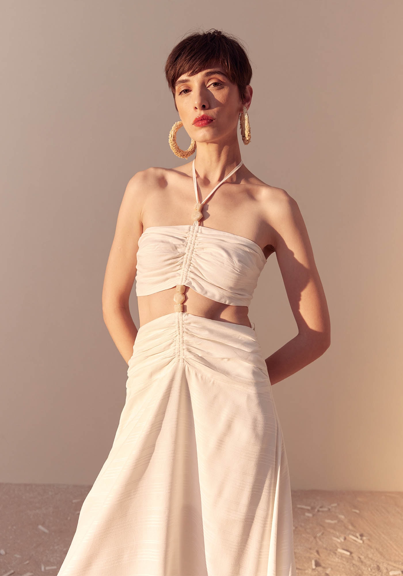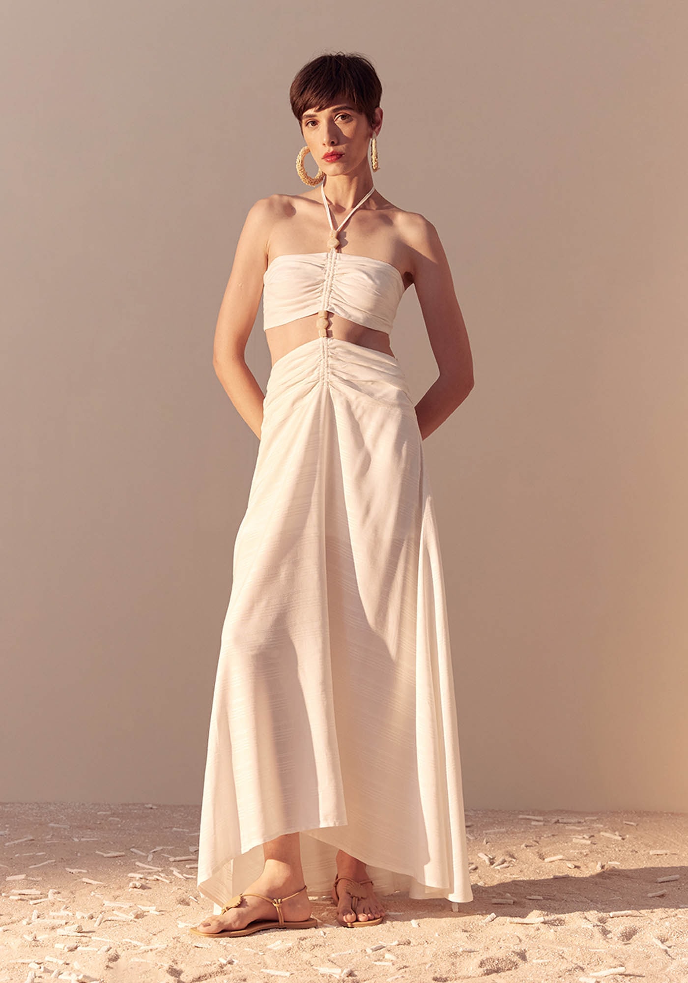 Este Vestido Longo é um modelo único que combina estilo e sofisticação, trazendo um visual marcante para o seu guarda-roupas. Confeccionado em 100% Viscose, ele apresenta uma saia mullet longa e ampla que cria um visual que transmite leveza e movimento. Seu design é frente única com amarração no pescoço e também na parte das costas garantindo um ajuste ideal ao corpo. Apresenta abertura na cintura que valoriza a silhueta e seu detalhe em miçangas traz todo o destaque para a peça junto aos túneis de ajuste na parte frontal com um franzido delicado que torna o modelo elegante e sofisticado. Este modelo é perfeito para o verão proporcionando frescor e um estilo singular.