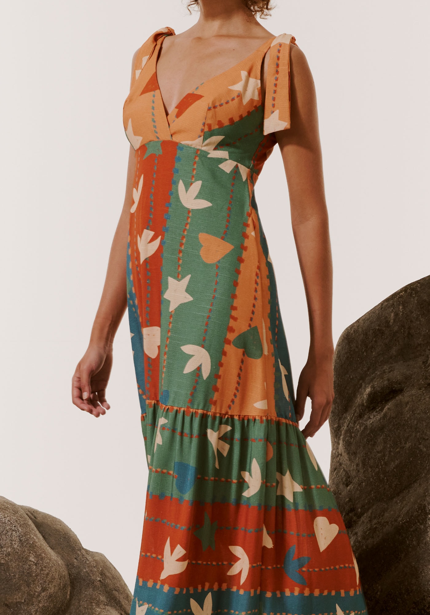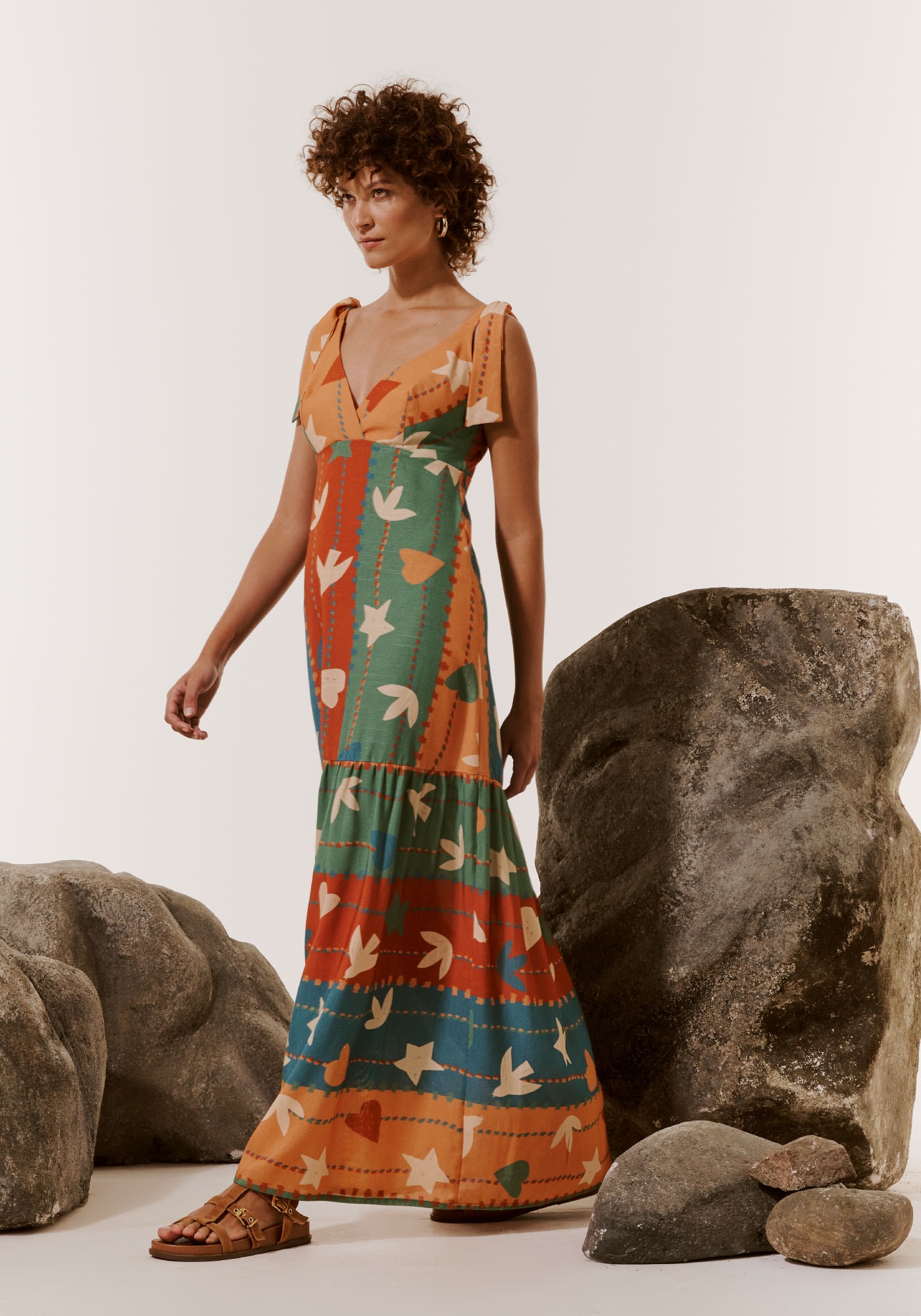 Este encantador vestido estampado combinaelegância e conforto e une estilo e comodidade em uma peça única.Confeccionado com uma mistura de 61%viscose e 39% algodão, o modelo possui alças ajustáveis que proporcionam nãoapenas um toque personalizado na modelagem, mas também praticidade ao vestir.