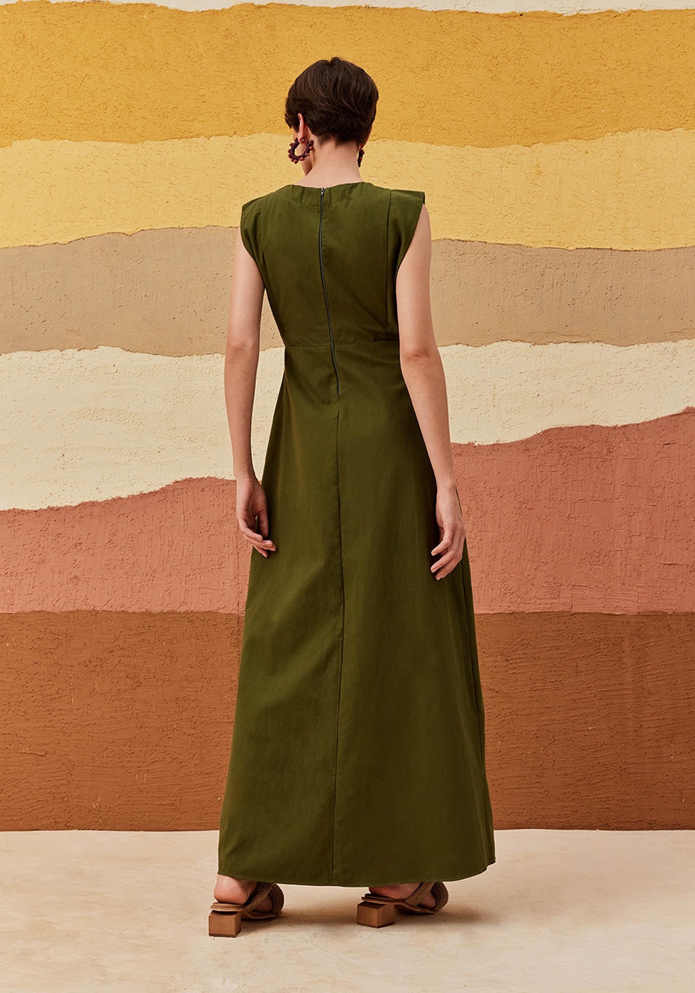 Detalhes O vestido longo é confeccionado em tecido 100% algodão. O modelo elegantíssimo possui cava lateral com taco e manga estilo mucle tee. Possui fechamento em zíper nas costas.