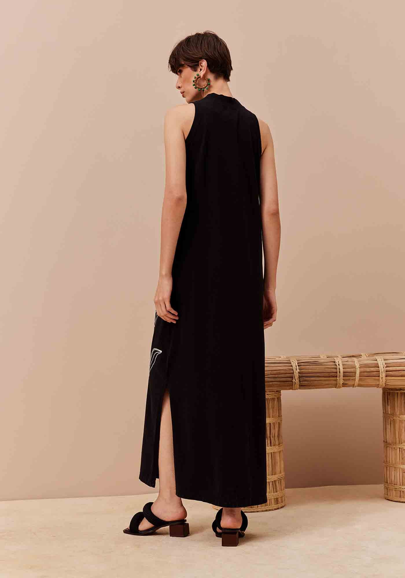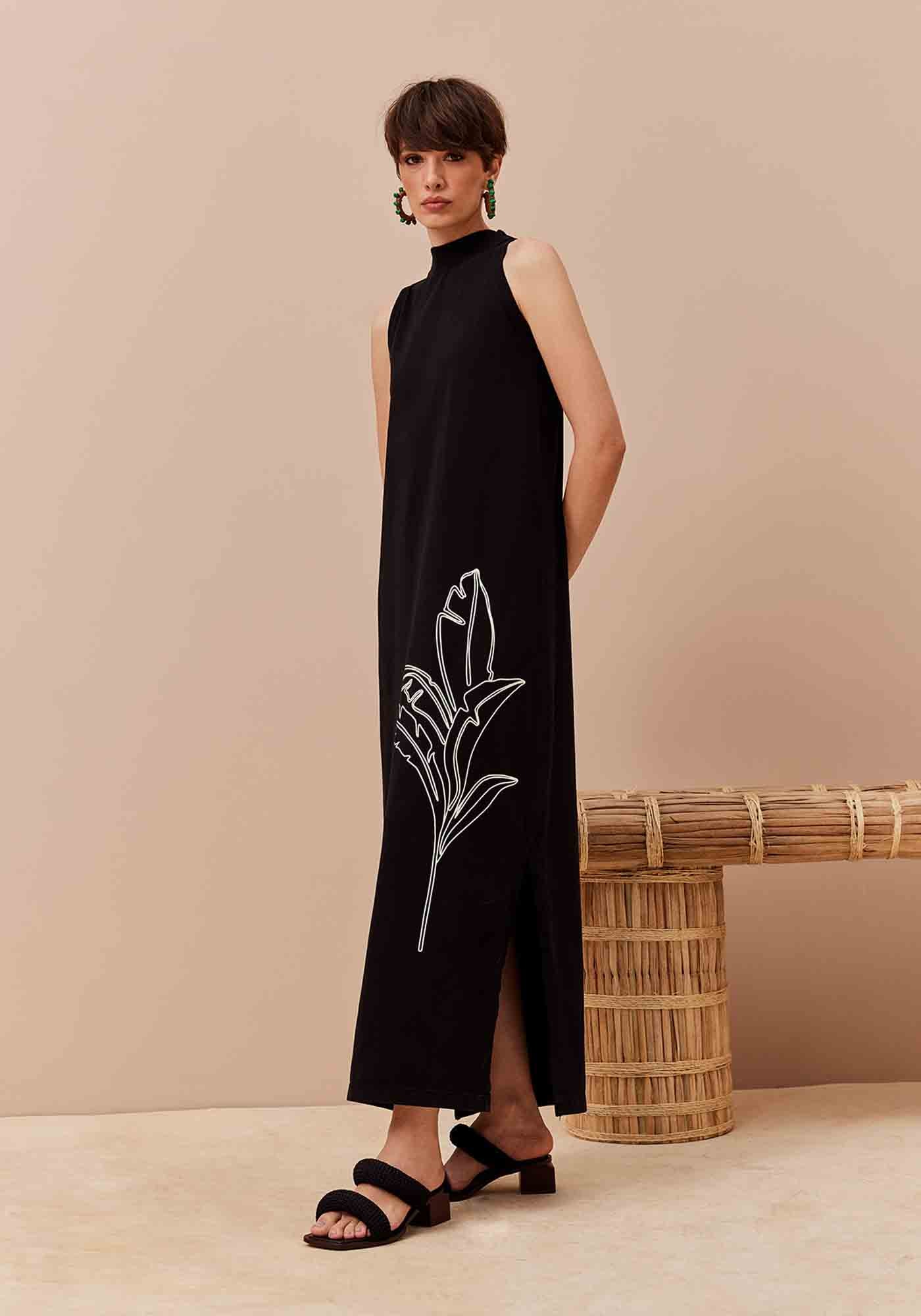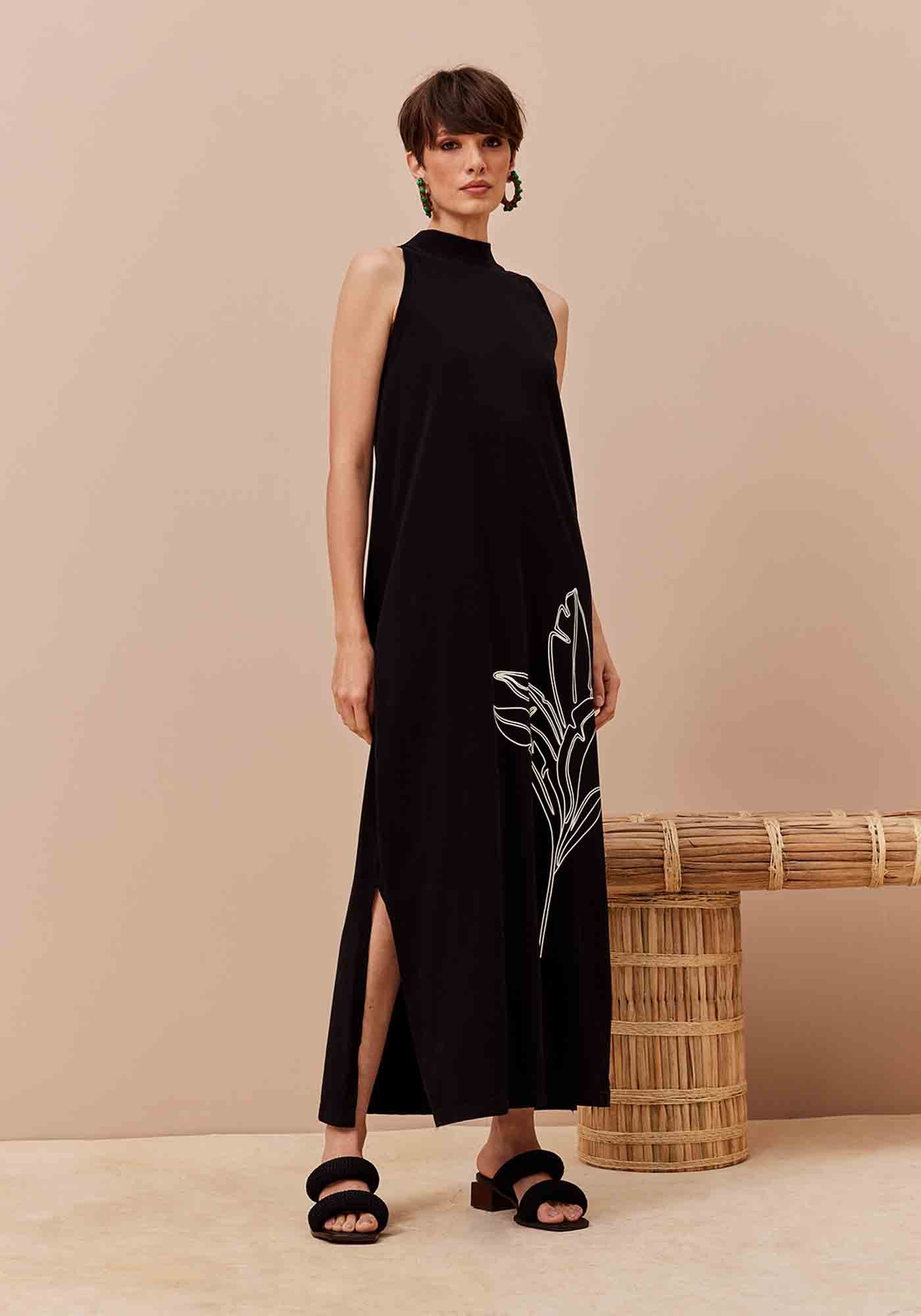 Este Vestido Longo confeccionado em Malha é a definição deelegância e praticidade. O modelo combina a sofisticação da gola alta com amodernidade das fendas laterais. O silk de folhagem na parte frontal adicionaum toque contemporâneo, criando um contraste único. Ideal para quem busca umvisual estiloso e despretensioso, o modelo regata permite liberdade demovimento enquanto exala charme.