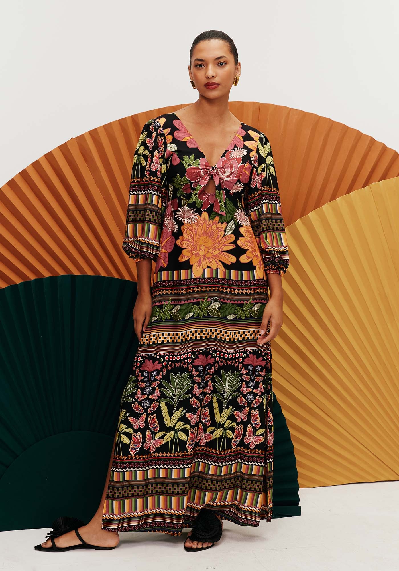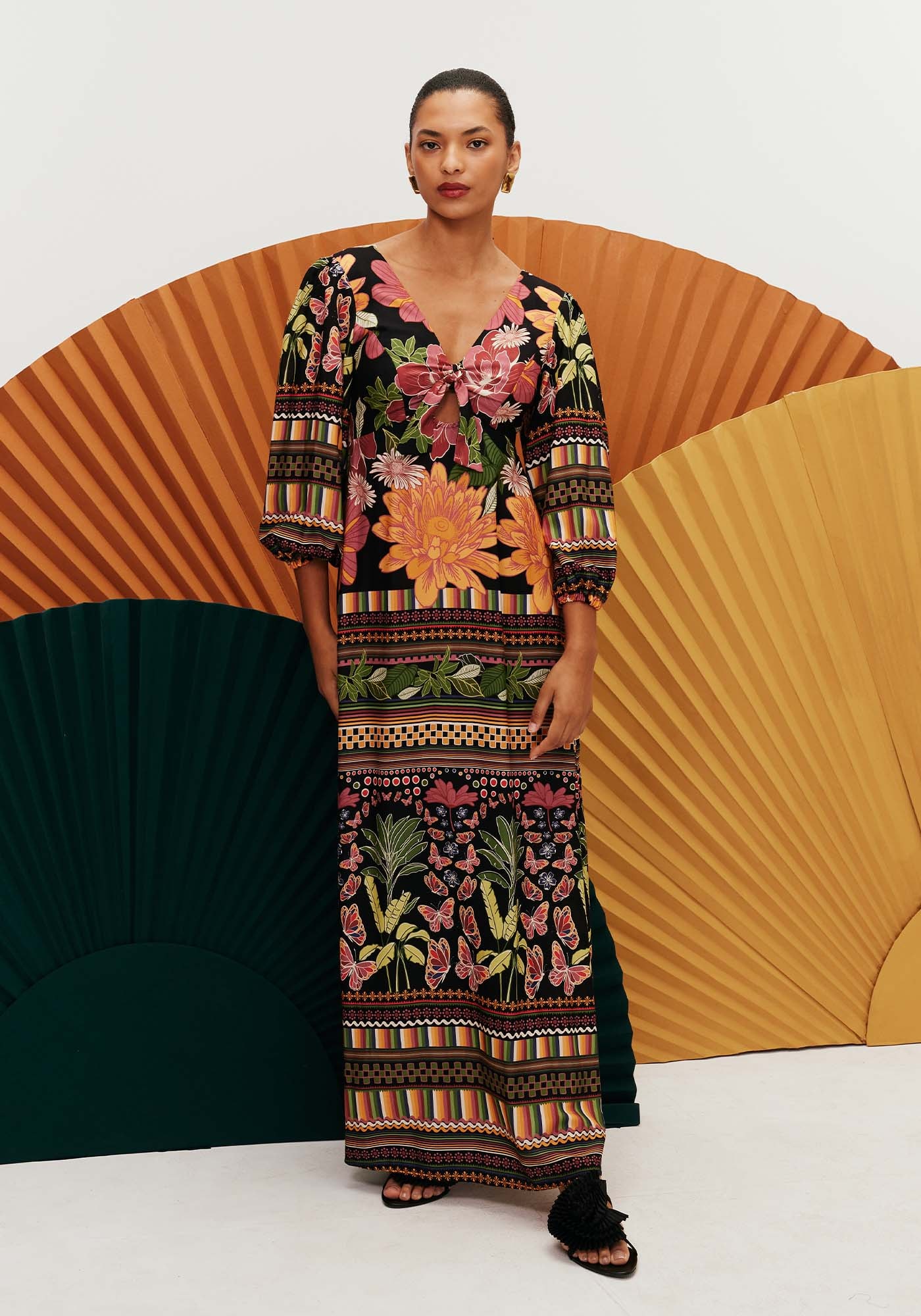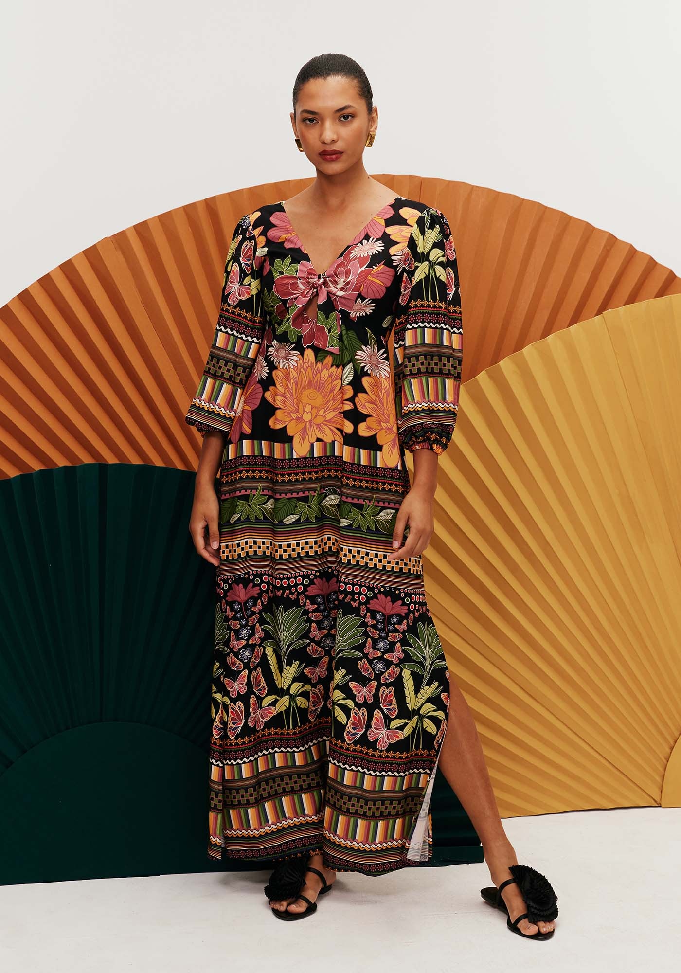 Elegante e charmoso, o vestido é confeccionado em tecido 100% viscose com decote em V e detalheno busto. O modelo possui amarração nas costas e manga ¾ com elástico quepermite o ajuste e fendas laterais que dão um charme a mais para o vestido.