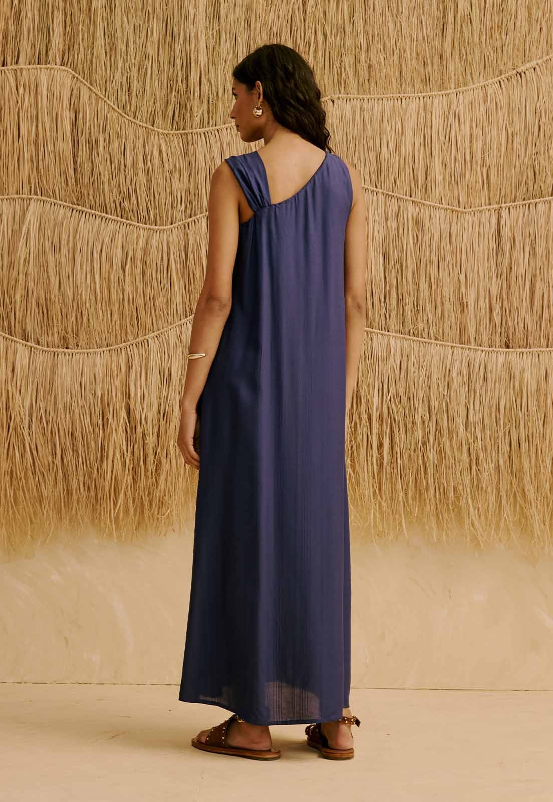 Confeccionado em 100% viscose, o tecido é leve, sem elasticidade, e proporciona conforto prolongado para diferentes ocasiões desde o dia a dia ao trabalho, passando por eventos casuais com sofisticação atemporal. O detalhe na alça traz um toque de estilo sem perder a simplicidade, e o acabamento garante bem-estar durante o uso. Versátil, combina facilmente com acessórios dourados, sandálias rasteiras ou uma bolsa estruturada, criando produções que equilibram leveza e elegância.