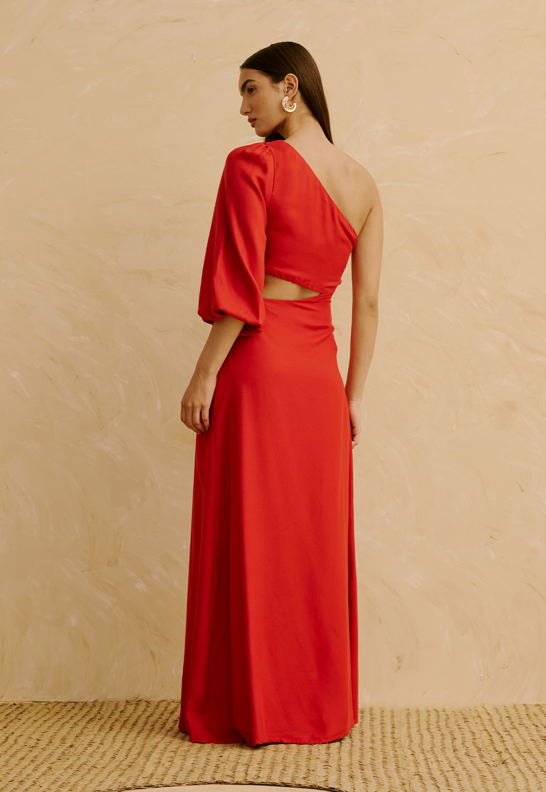O Vestido Longo Um Ombro Só com Detalhe na Cintura da CaCay tem modelagem fluida e elegante, com caimento solto no quadril e comprimento até o chão. O busto é ajustado, enquanto a cintura ganha destaque com recorte e detalhe em argola, valorizando a silhueta. A manga bufante única adiciona sofisticação ao visual. A modelo da foto tem 1,75 m, veste manequim 36 e está usando o tamanho P. A forma é grande. Se estiver em dúvida entre dois tamanhos, recomendamos optar pelo menor, sempre conferindo a tabela de medidas.