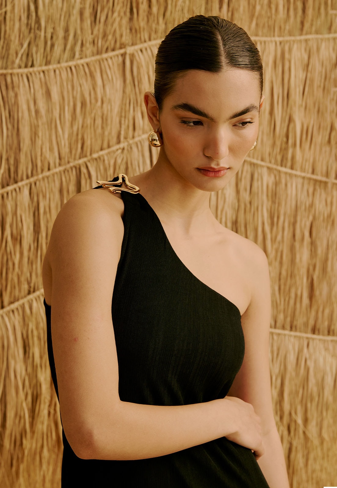 O Vestido Longo Liso Um Ombro Só com Passador da CaCay traz uma modelagem elegante e atemporal, com caimento que valoriza o corpo de forma natural, ajusta suavemente a cintura e acompanha o quadril com fluidez até o comprimento longo. A forma é grande, então se estiver em dúvida entre dois tamanhos, recomendamos escolher o menor e consultar a tabela de medidas para precisão. Na foto, a modelo tem 1,75m de altura, veste manequim 36 e usa o tamanho P.