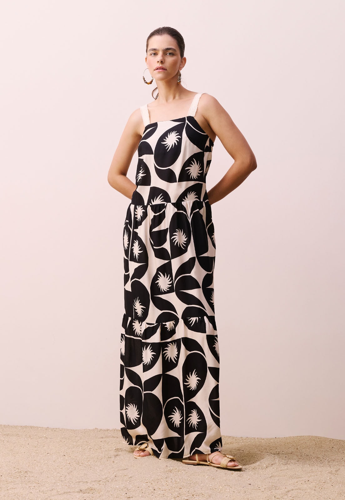 A CaCay propõe uma estética atemporal, onde o design se conecta com a natureza e o cotidiano. Este vestido combina perfeitamente com sandálias de tiras finas, rasteiras minimalistas ou até mesmo botas de cano curto para um toque urbano. Para compor o look, aposte em acessórios como colares orgânicos, brincos em madeira ou bolsas de palha estruturadas. Ideal para quem busca uma peça única, com personalidade e que se destaca em qualquer ambiente.