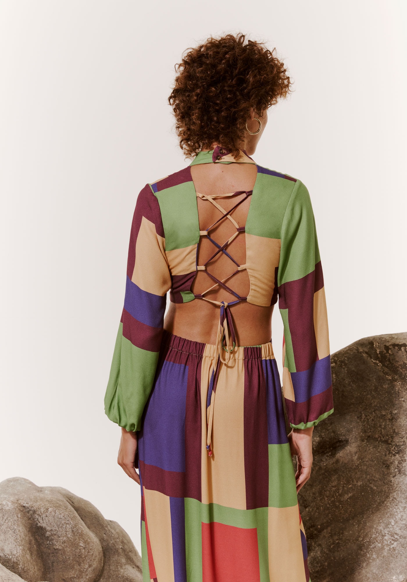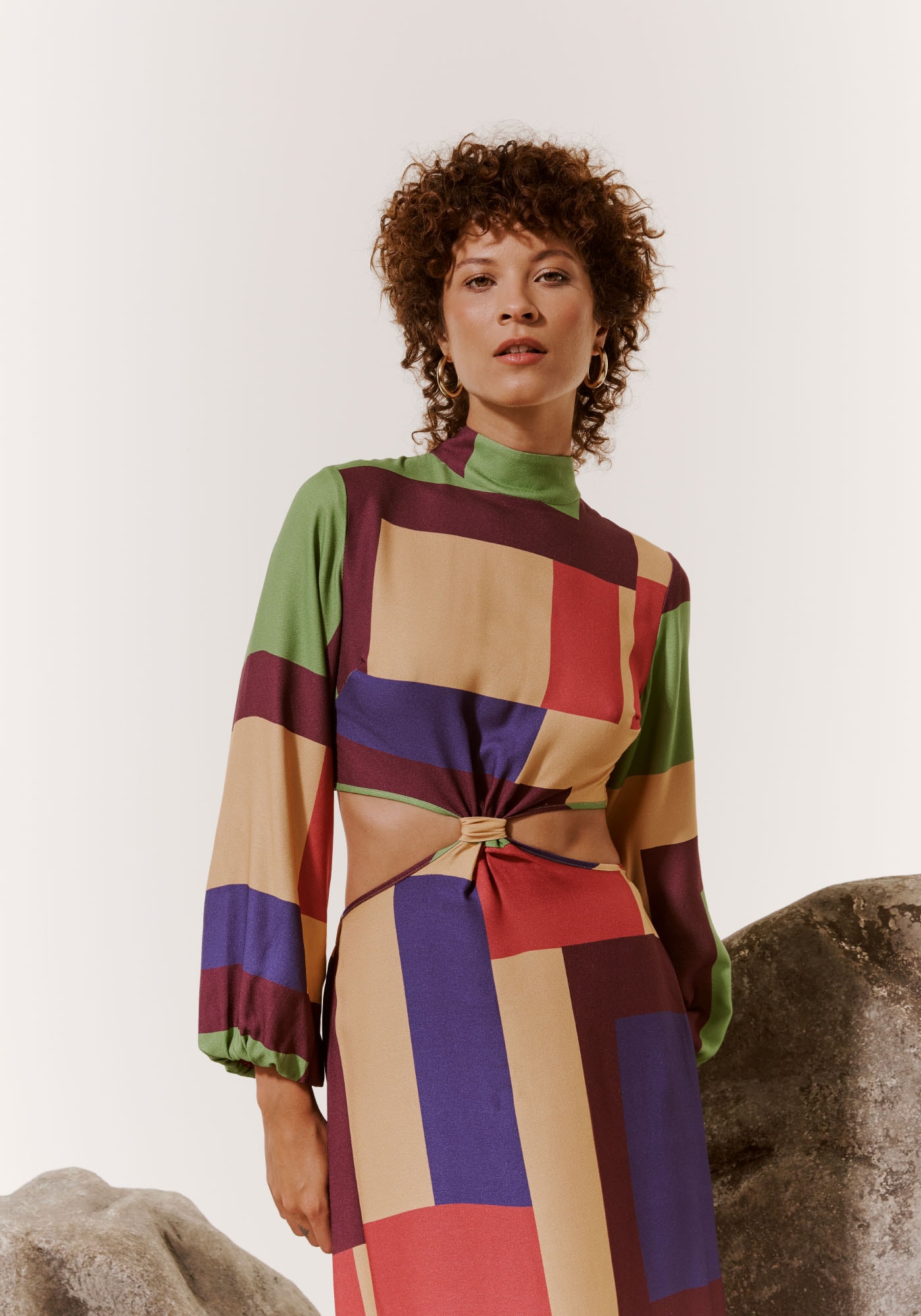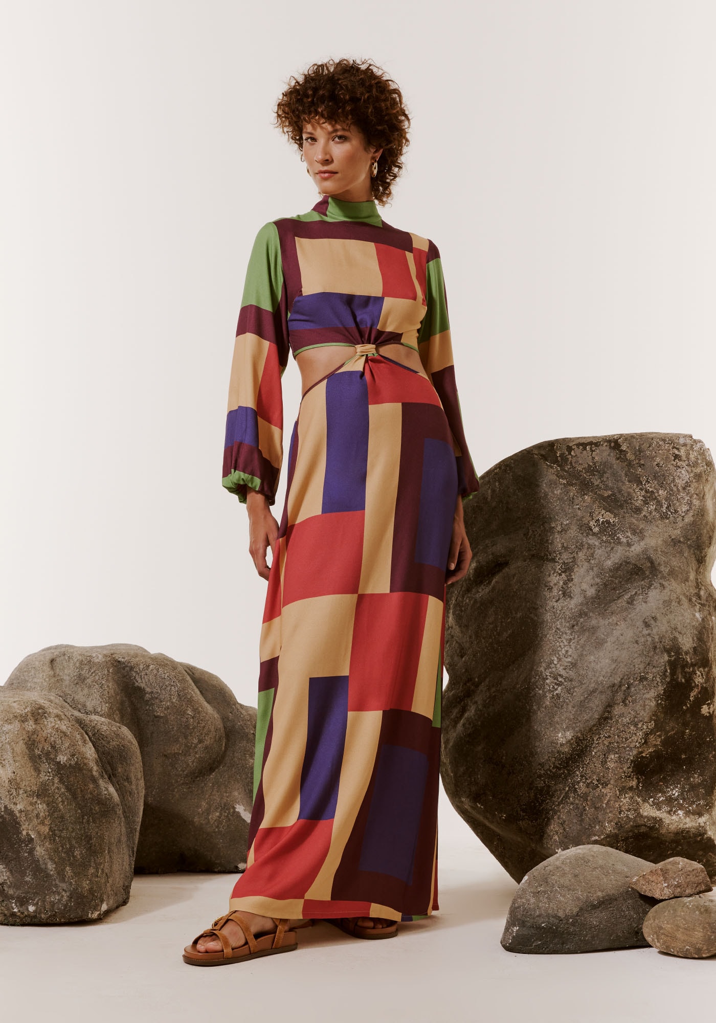 Esse vestido é um modelo apaixonante, queexala sofisticação e elegância. Confeccionado em tecido 100% viscose com manga longa e golinha alta, a modelagem vazada na lateral comdetalhe cruzado nas costas deixa o vestido ousado e sensual.