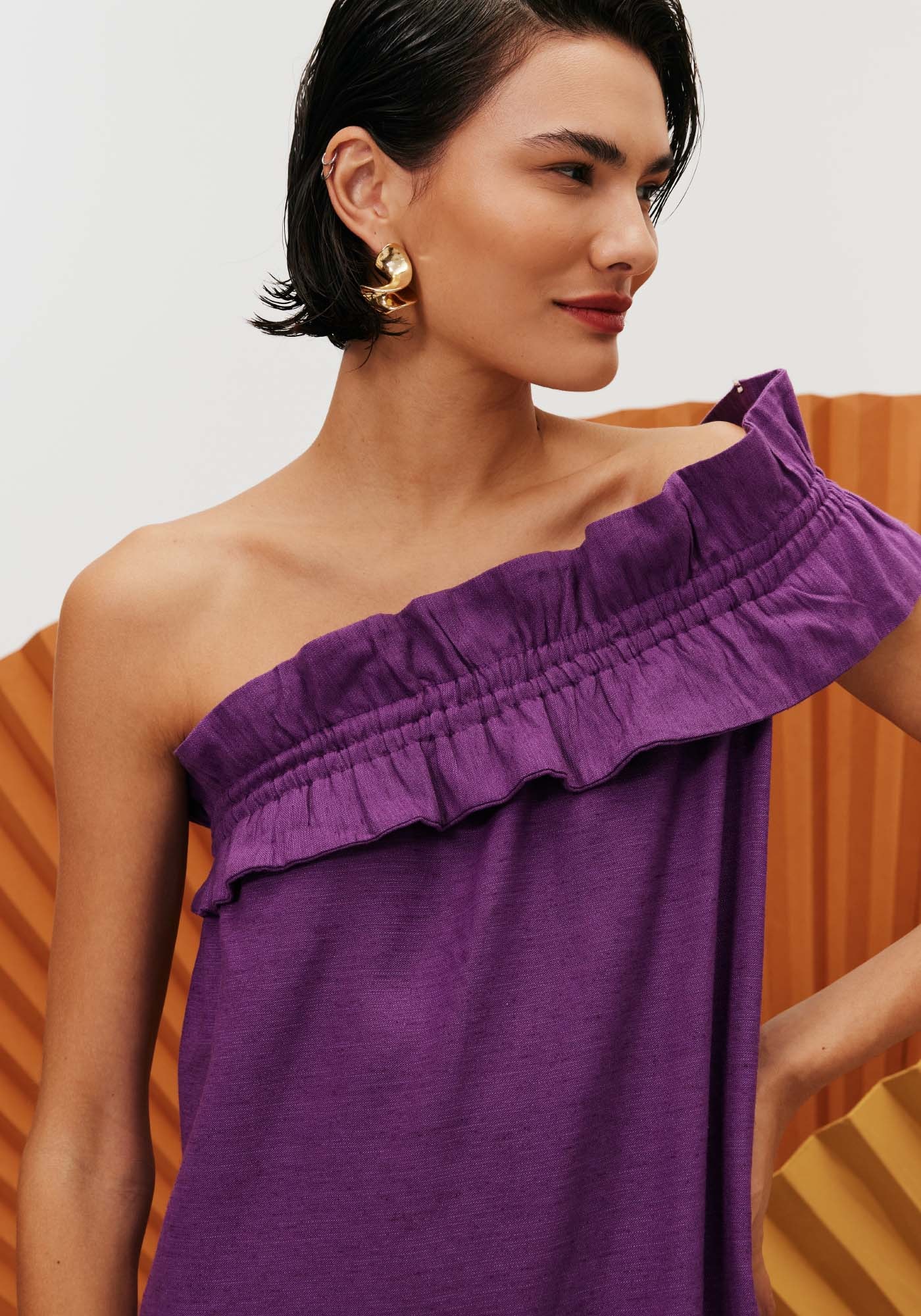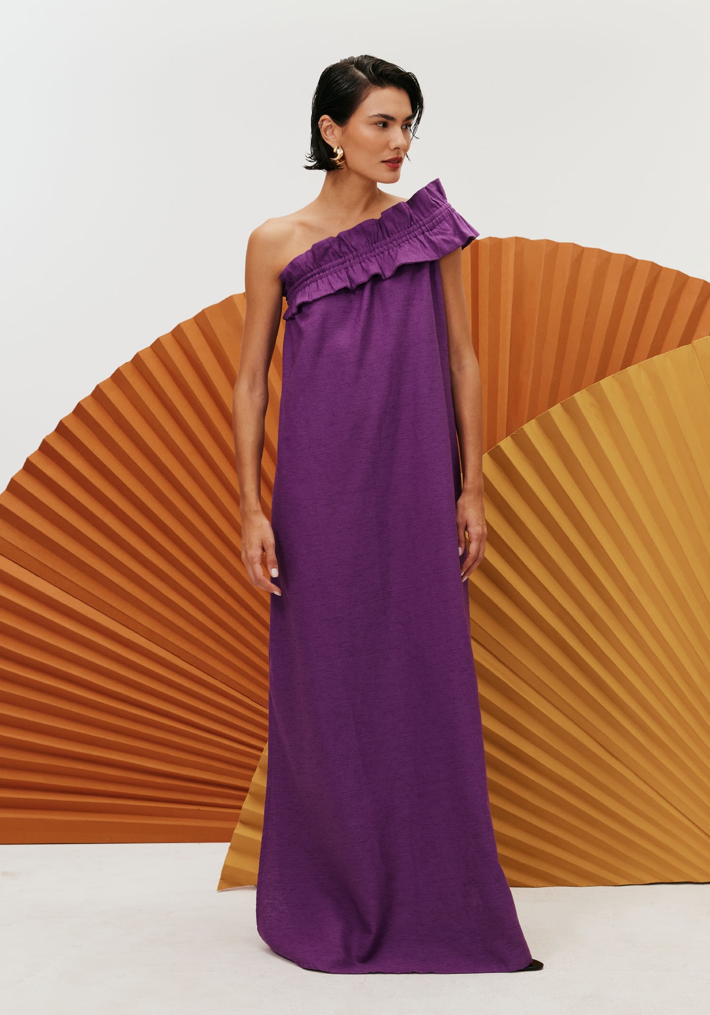 O vestido longo é umespetáculo à parte. O modelo sofisticado e elegante é perfeito para ocasiõesespeciais. Com shape reto e um ombro só, conta com um detalhe franzido que é odestaque da peça.