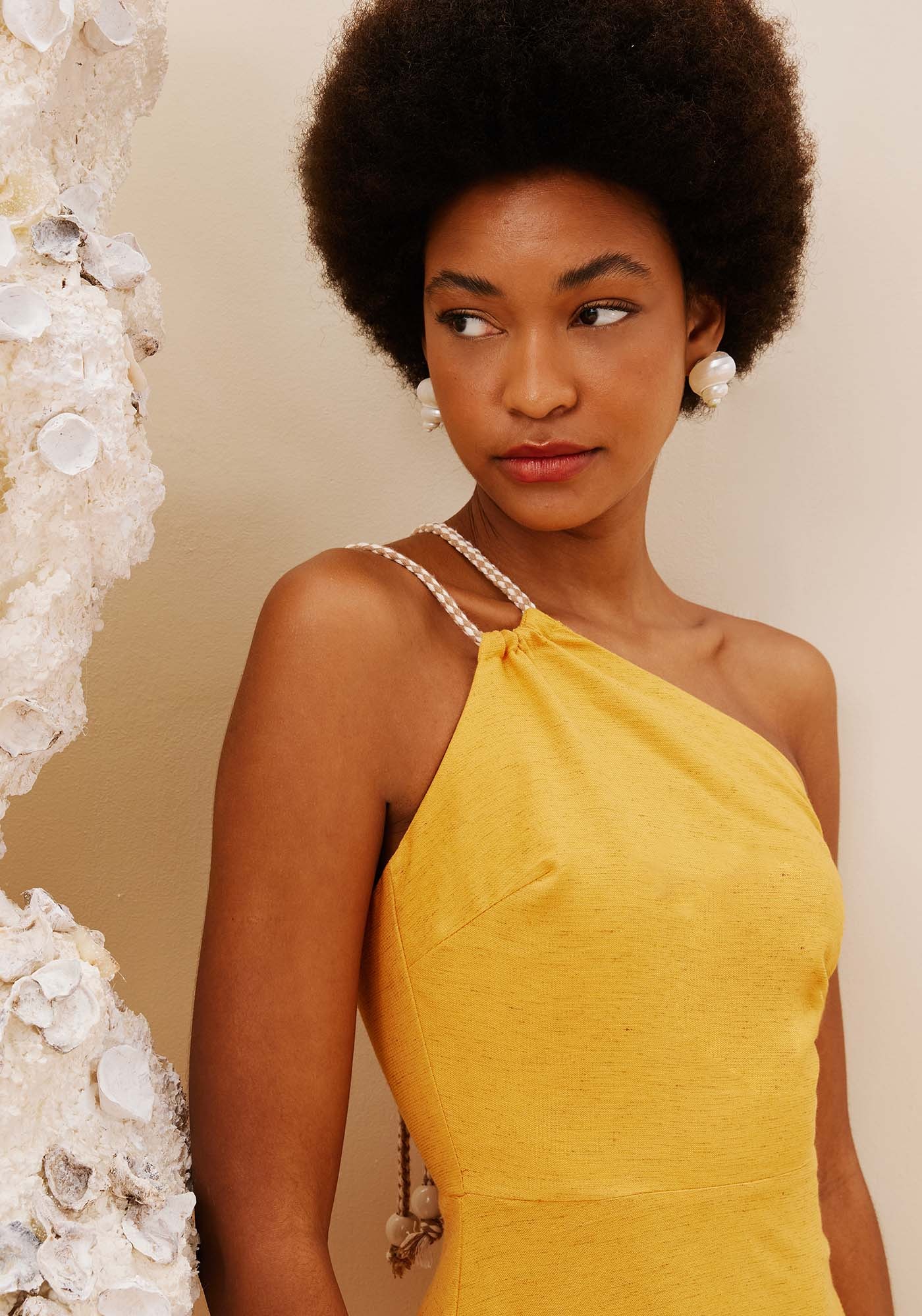 Com um design de um ombro só,este vestido longo se destaca pelo encantador detalhe de alça em amarração de cordasque proporciona um toque artesanal e único. A modelagem fluida com saia amplagarante um visual fluido e sofisticado. Apresenta fechamento em zíper invisívelna parte das costas e é confeccionado em tecido de composição 42% Algodão 38% Viscose14% Modal 6% Linho.