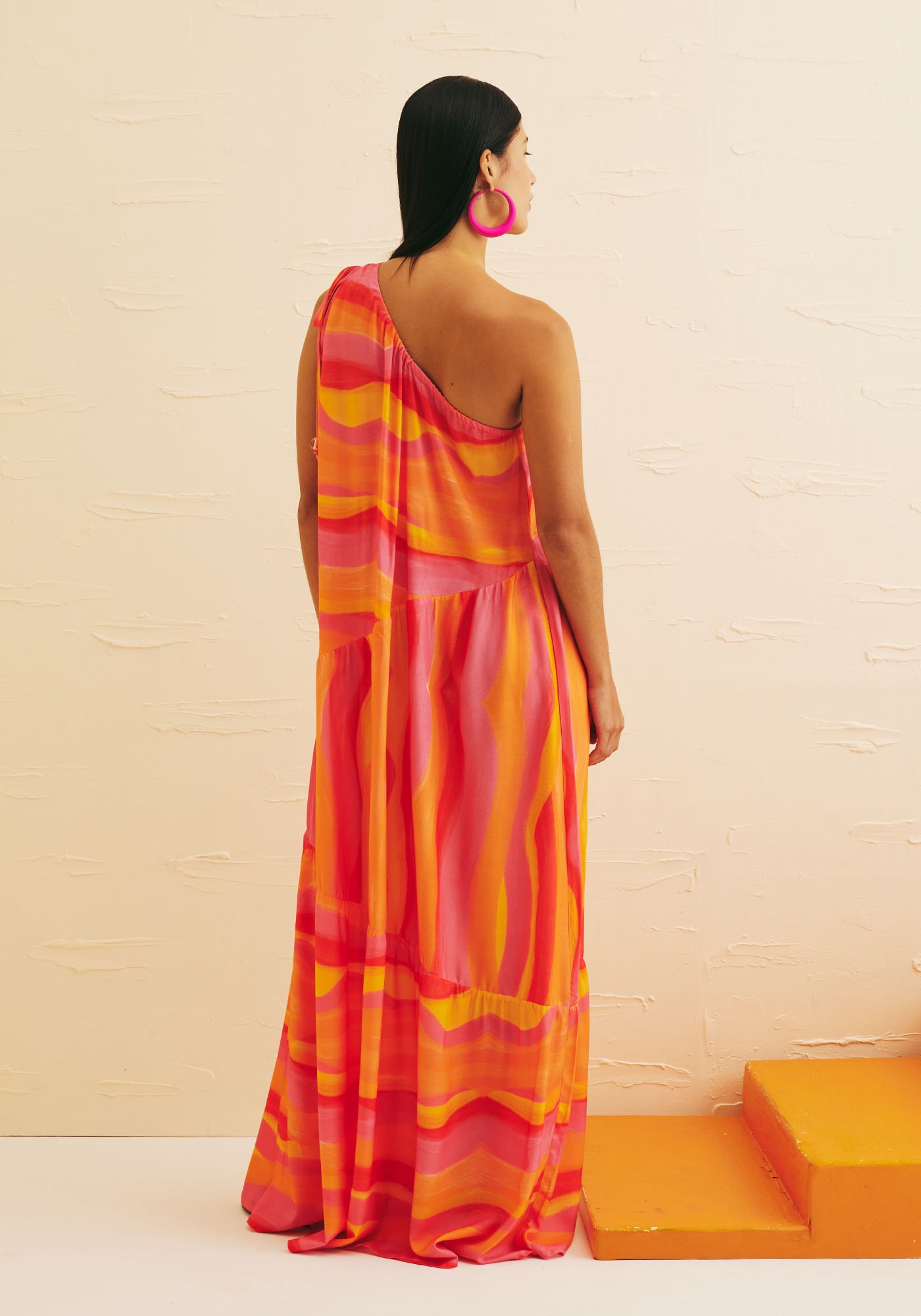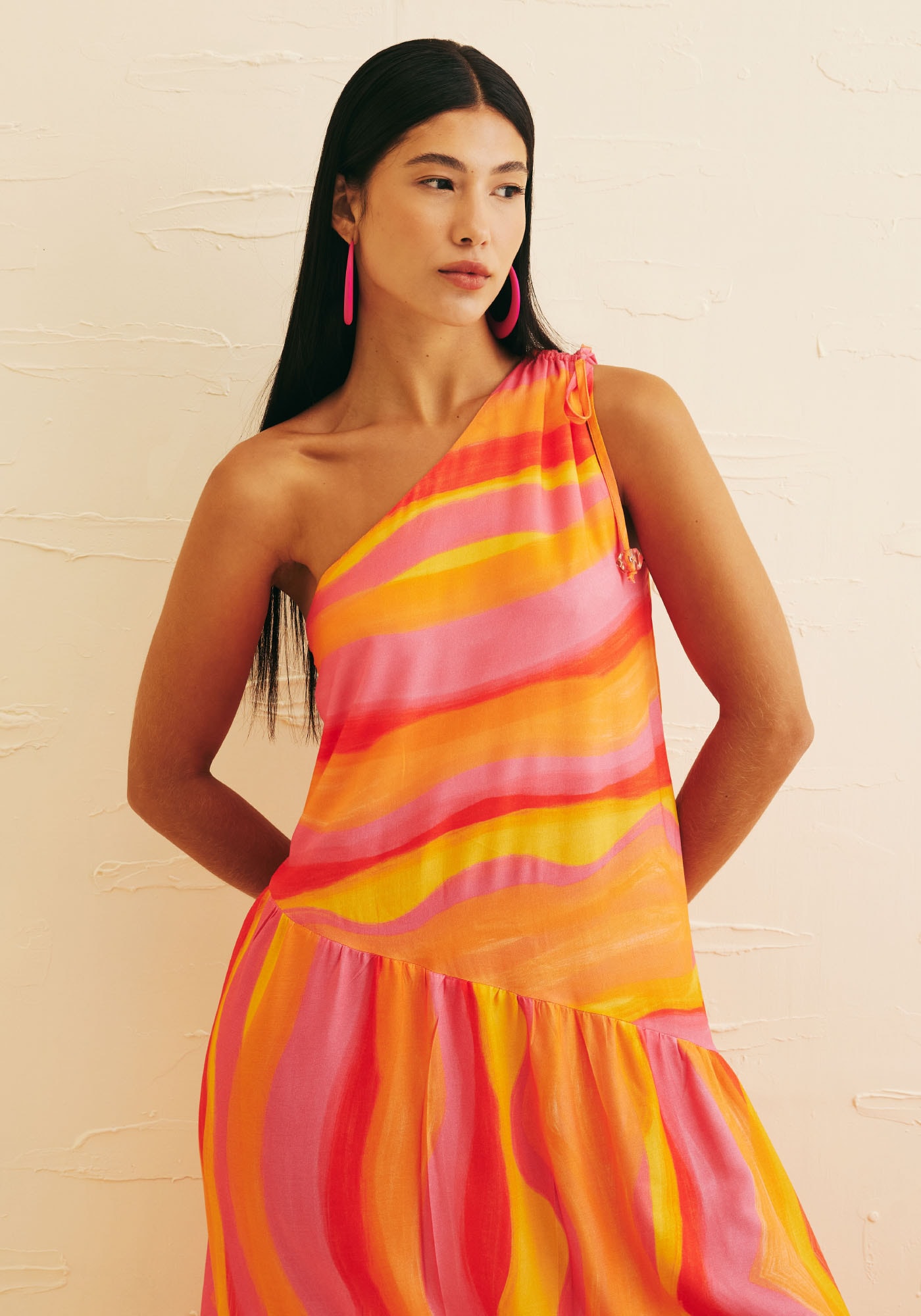Nossoencantador Vestido Longo Ombro Só Jujuy é confeccionado em 100% viscose eproporciona muita fluidez. Possui uma modelagem ampla que traz conforto e seusbabados assimétricos e ombro franzido com amarração trazem ainda mais estilo àesta peça. Pensado para diversas ocasiões, este modelo é extremamente versátile vem na estampa Jujuy em tons de rosa, laranja e amarelo quentes como o verão.