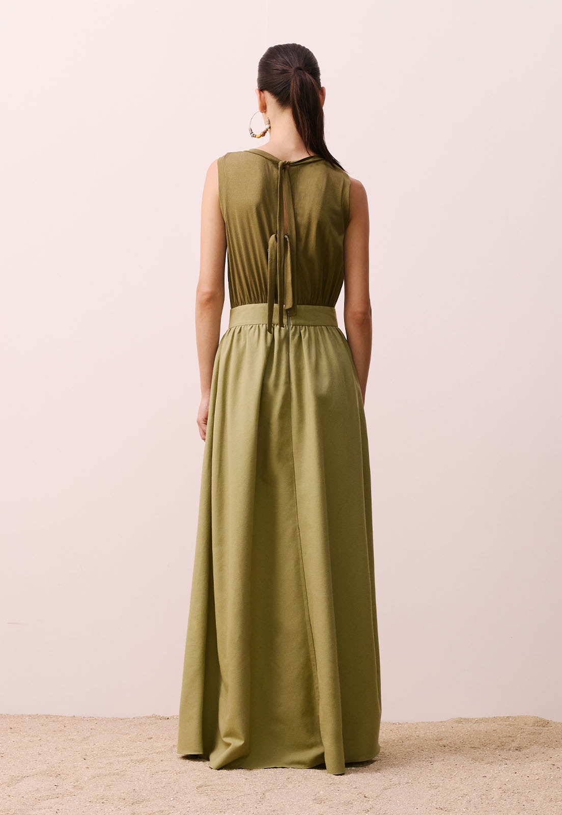 O Vestido Longo Regata CaCay combina elegância atemporal com conforto natural, ideal para quem busca estilo sem esforço. Com modelagem fluida e corte reto na parte superior, ele valoriza a silhueta com um cós largo na cintura e uma saia longa que acompanha suavemente os movimentos. A gola redonda e o design sem mangas garantem frescor e versatilidade, enquanto o detalhe de amarração nas costas adiciona um toque delicado e moderno. Confeccionado em tecido leve com composição de 70% algodão e 30% viscose, proporciona excelente respirabilidade e caimento suave, perfeito para o dia a dia ou eventos semi-formais.