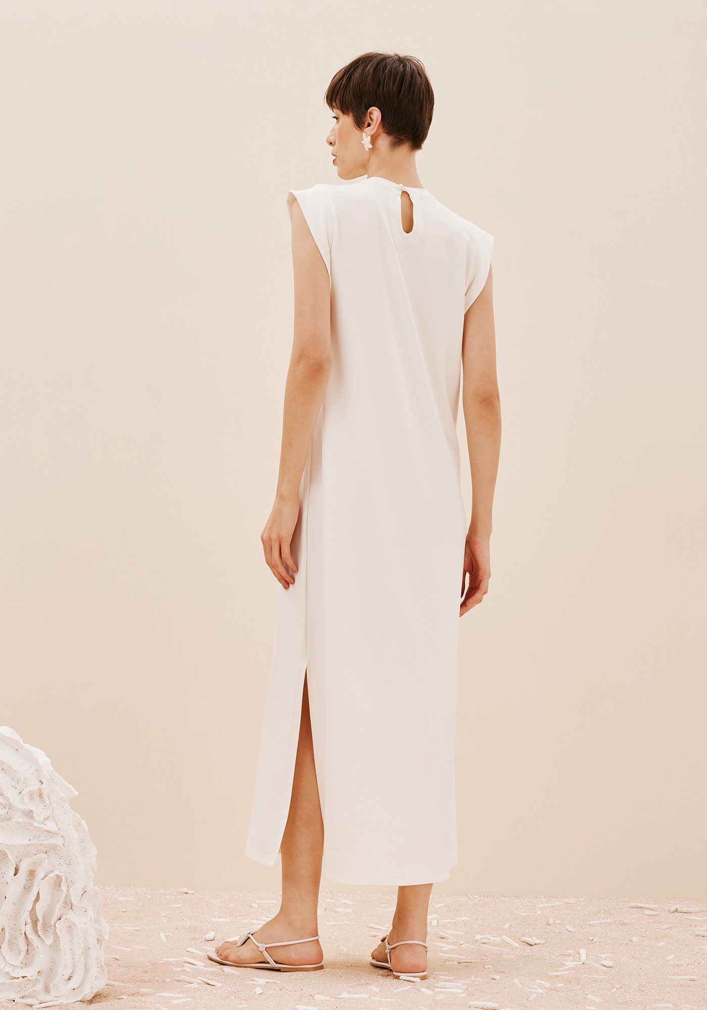Sofisticado e minimalista, estevestido longo é confeccionado no tecido Moletinho de composição 94% Viscose 6%Elastano. Com suas fendas laterais e manga muscle tee, este modelo une umestilo único e conforto em uma única peça. Apresenta modelagem reta e golaredonda com abotoamento em gota nas costas que adiciona um detalhe charmoso.