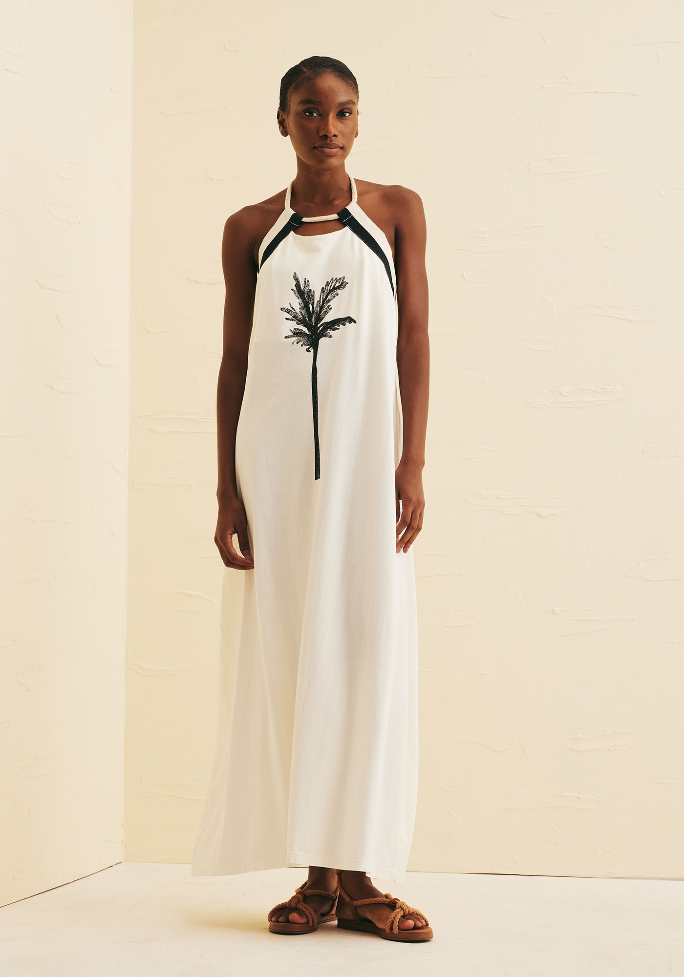 O Vestido Longo SilkCoqueiro é a escolha certa se você busca uma peça moderna e cheia depersonalidade. Com seu design frente única, o modelo se diferencia pelo detalhecharmoso da amarração em corda, além do recorte em seu decote. O coqueiro emsilk na parte frontal do vestido traz um ar mais tropical à peça. É ideal para umlook de verão que combina estilo e conforto. Sua composição é de 100% algodão.