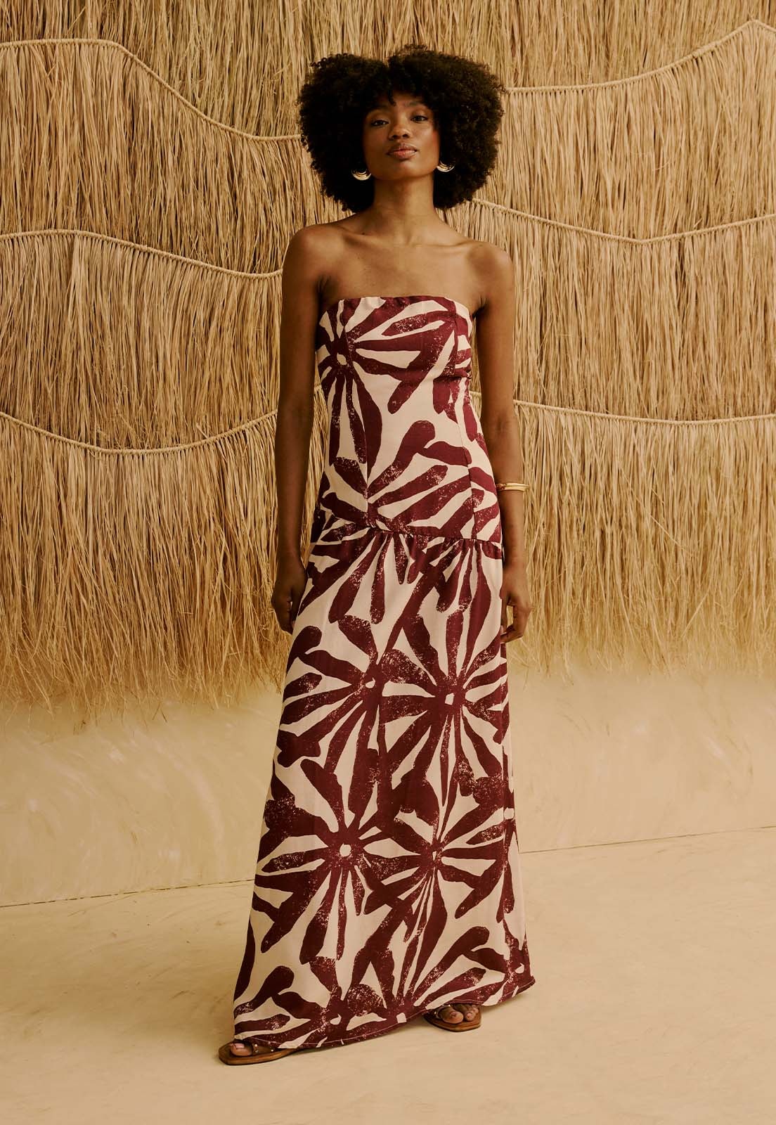 O Vestido Longo Tomara Que Caia Estampado Perka da CaCay tem modelagem reta e elegante, com caimento fluido que acompanha o corpo. O comprimento é longo e sofisticado, ideal para quem busca uma peça versátil para eventos, trabalho ou momentos casuais com estilo. A forma é grande: se estiver em dúvida entre dois tamanhos, recomendamos optar pelo menor, sempre conferindo a tabela de medidas. A modelo da foto tem 1,75 m, veste manequim 36 e usa o tamanho P.