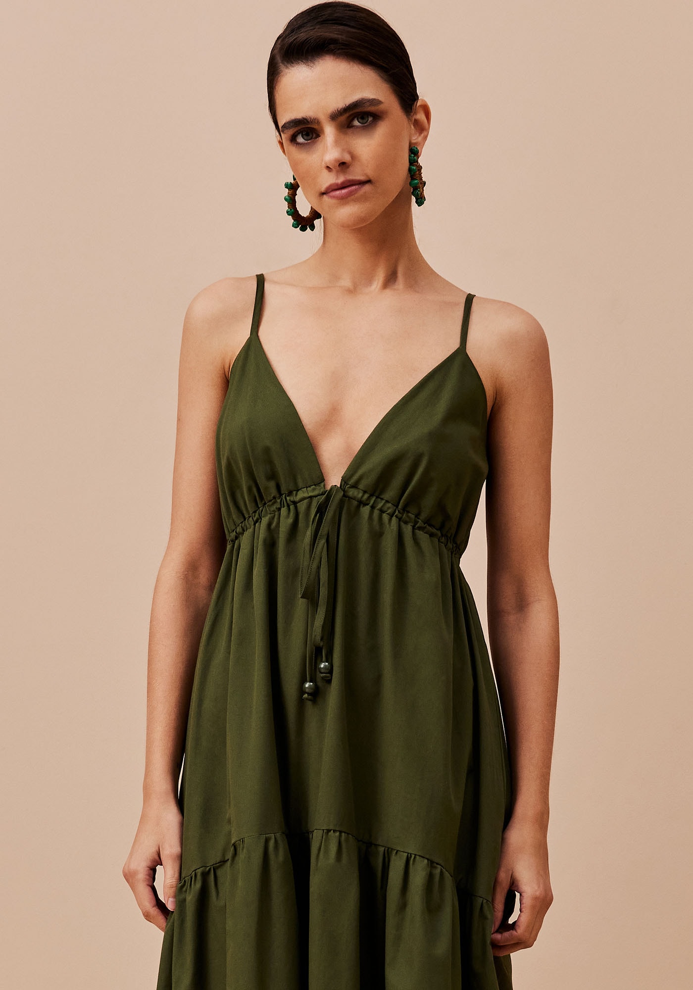 Combine com sandálias rasteiras para um look despojado ou aposte em acessórios marcantes e uma clutch para transformar o visual em algo sofisticado. Um vestido que une respirabilidade, movimento e charme atemporal.
