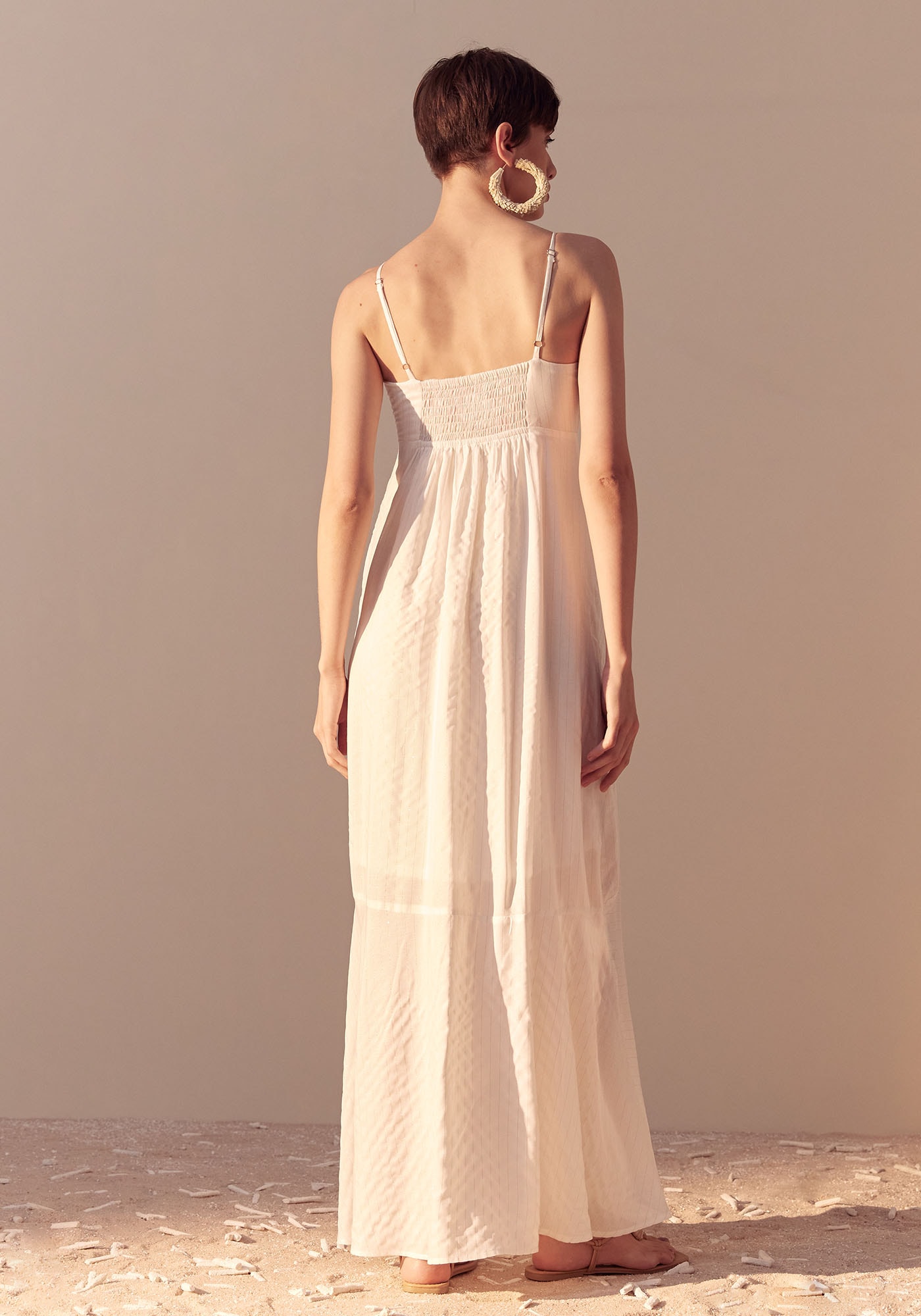 O Vestido Max Longo traz leveza emovimento ao seu guarda-roupas. Apresenta um design assimétrico e alças finasajustáveis, proporcionando um visual feminino e delicado. Sua modelagem únicacom maria assimétrica torna a peça única, enquanto o lastex nas costas garanteconforto e um ajuste personalizado ao corpo valorizando a silhueta. Possuicomposição 99% Viscose 1% Poliéster.