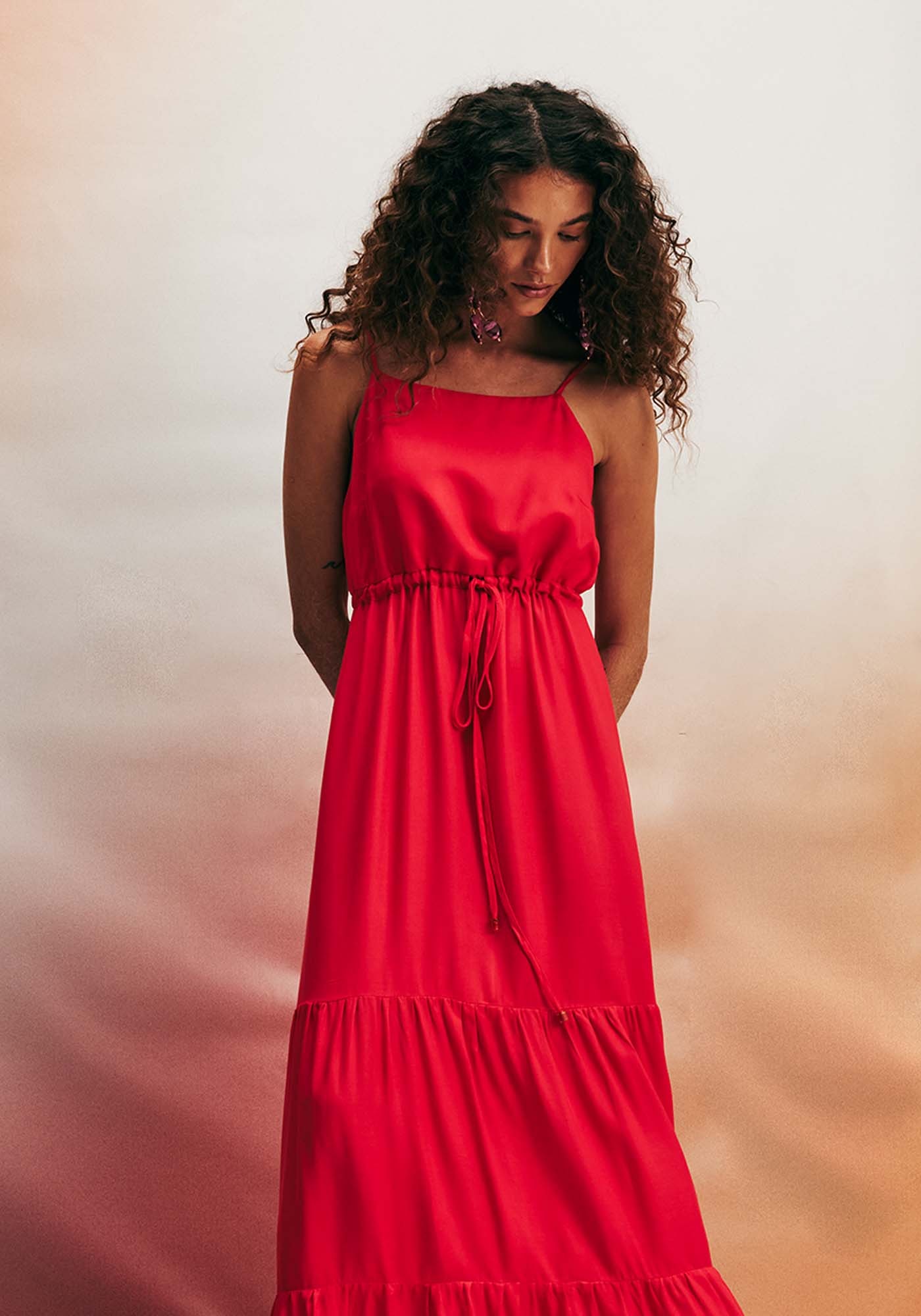 Elaborado em luxuosotecido 100% viscose, este encantador vestido midi apresenta um elegante recortena cintura. Com detalhes delicados nas extremidades, essa peça destaca-se comouma escolha sofisticada, ideal para diversas ocasiões. A união impecável entreestilo e conforto torna este vestido uma opção única e refinada para realçar asua presença com elegância.