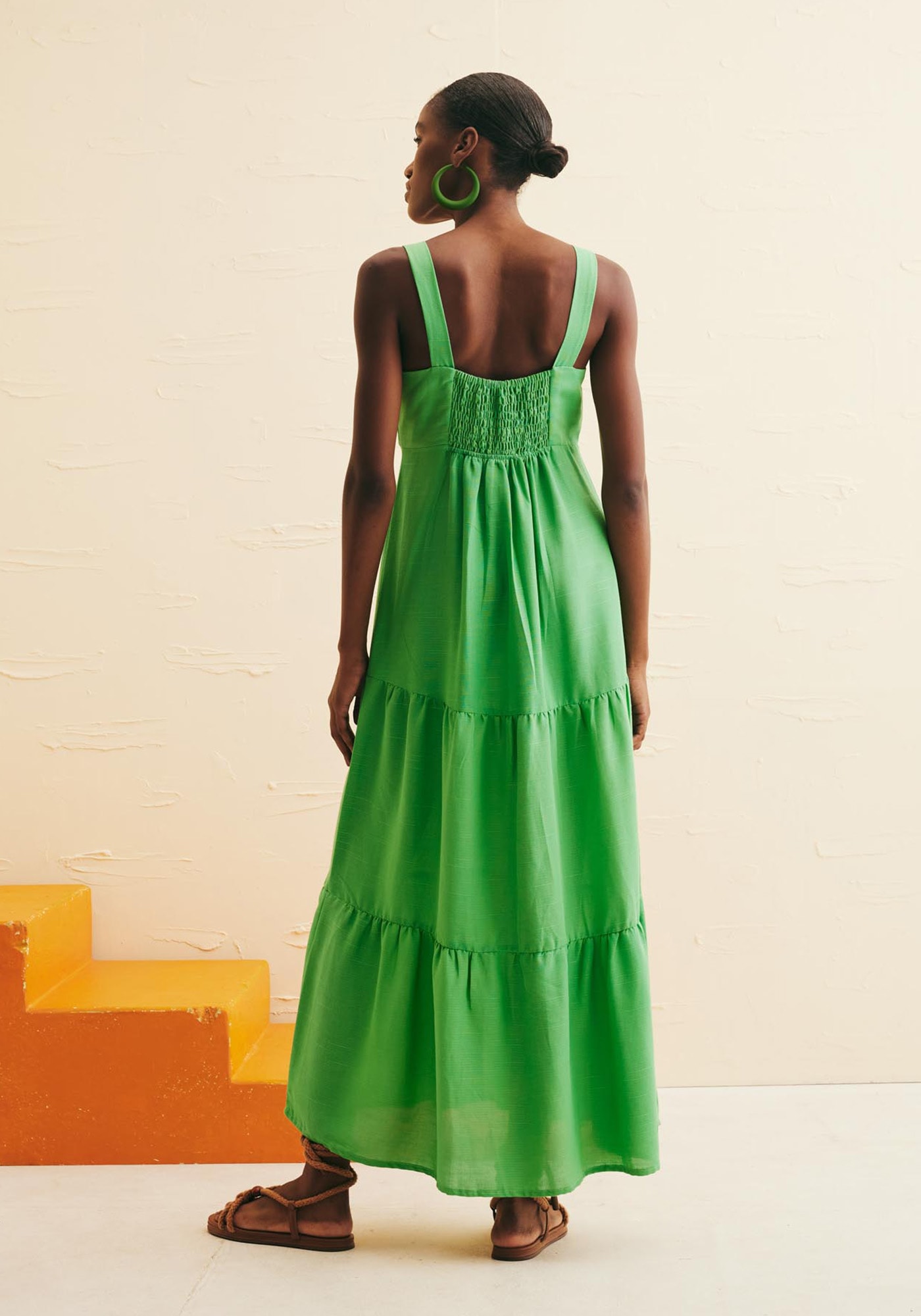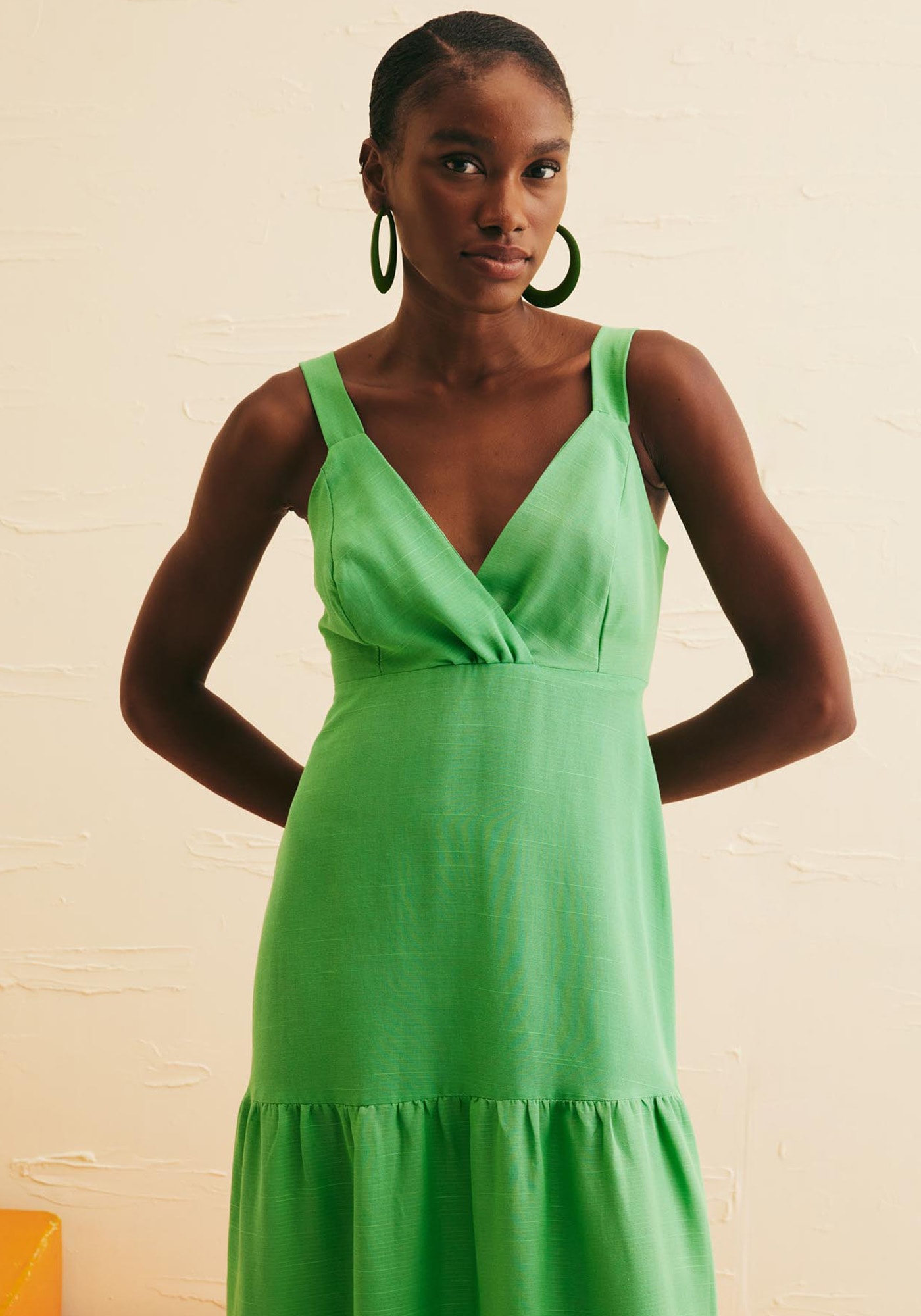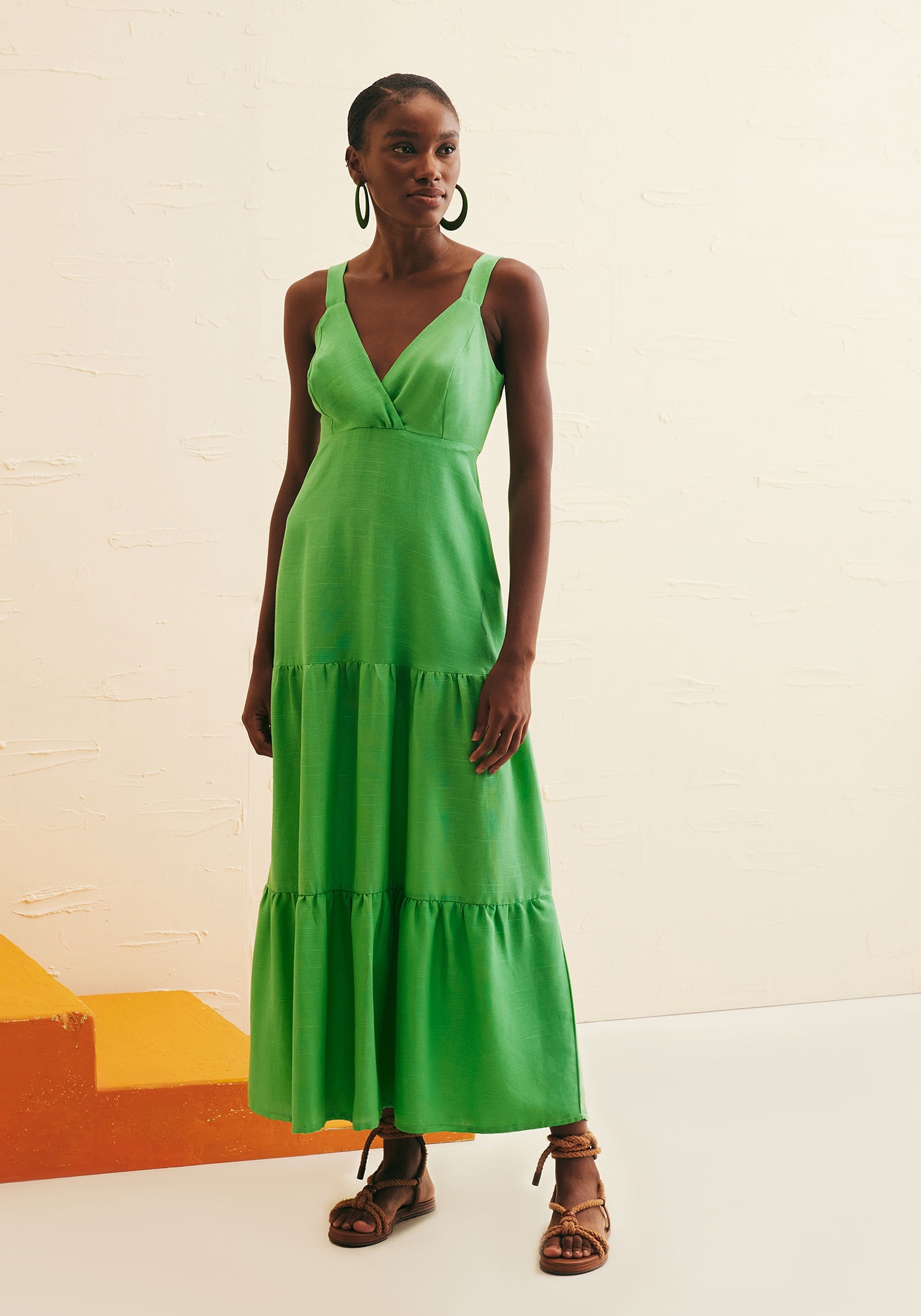 O Vestido Maxi Midi Alça Larga Decote Lisoé a escolha ideal para um visual elegante, descontraído e feminino. Possuidecote frontal em V com transpasse e alças largas e valoriza a região do colode forma sofisticada. Suas três marias trazem um ar mais romântico e feminino àpeça, enquanto a sua marcação abaixo do busto permite valorizar a silhueta.Possui lastex na parte das costas que proporciona um ajuste ideal ao corpo deforma confortável. É confeccionado em tecido de composição 61% viscose 39%algodão.