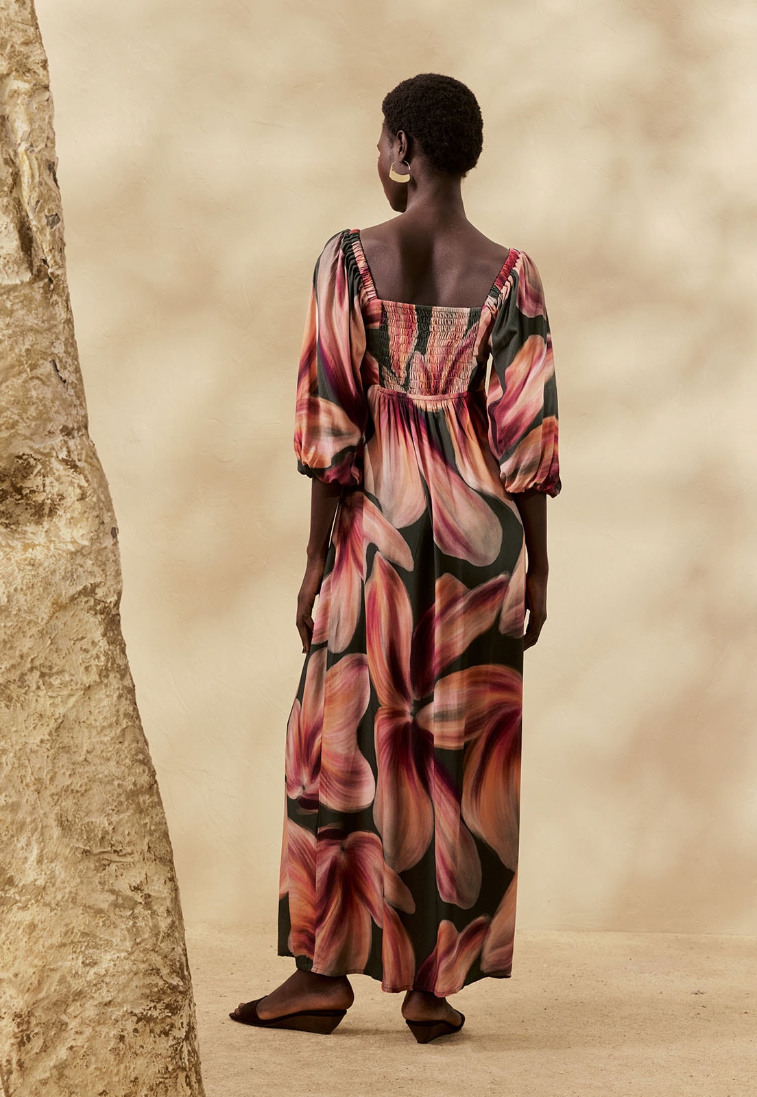 O Vestido Maxi Midi Estampado Follaje da CaCay tem modelagem fluida e elegante, com caimento suave no busto e ajuste confortável nas costas graças ao lastex. O decote com detalhe delicado valoriza a região, enquanto as mangas bufantes garantem mobilidade e leveza. A forma é grande, então se estiver em dúvida entre dois tamanhos, opte pelo menor e consulte a tabela de medidas para precisão. A modelo da foto tem 1,75m, veste manequim 36 e está usando o tamanho P.Confeccionado em 100% viscose, o tecido é leve, sem elasticidade, ideal para uso prolongado com frescor e conforto. Versátil, transita bem entre ocasiões casuais, trabalho ou eventos, sempre com um toque sofisticado. A estampa acrescenta personalidade atemporal, e o comprimento maxi midi valoriza a silhueta com movimento. Combine com acessórios discretos, sandálias de tiras ou uma clutch estruturada para compor produções que equilibram estilo e praticidade.
