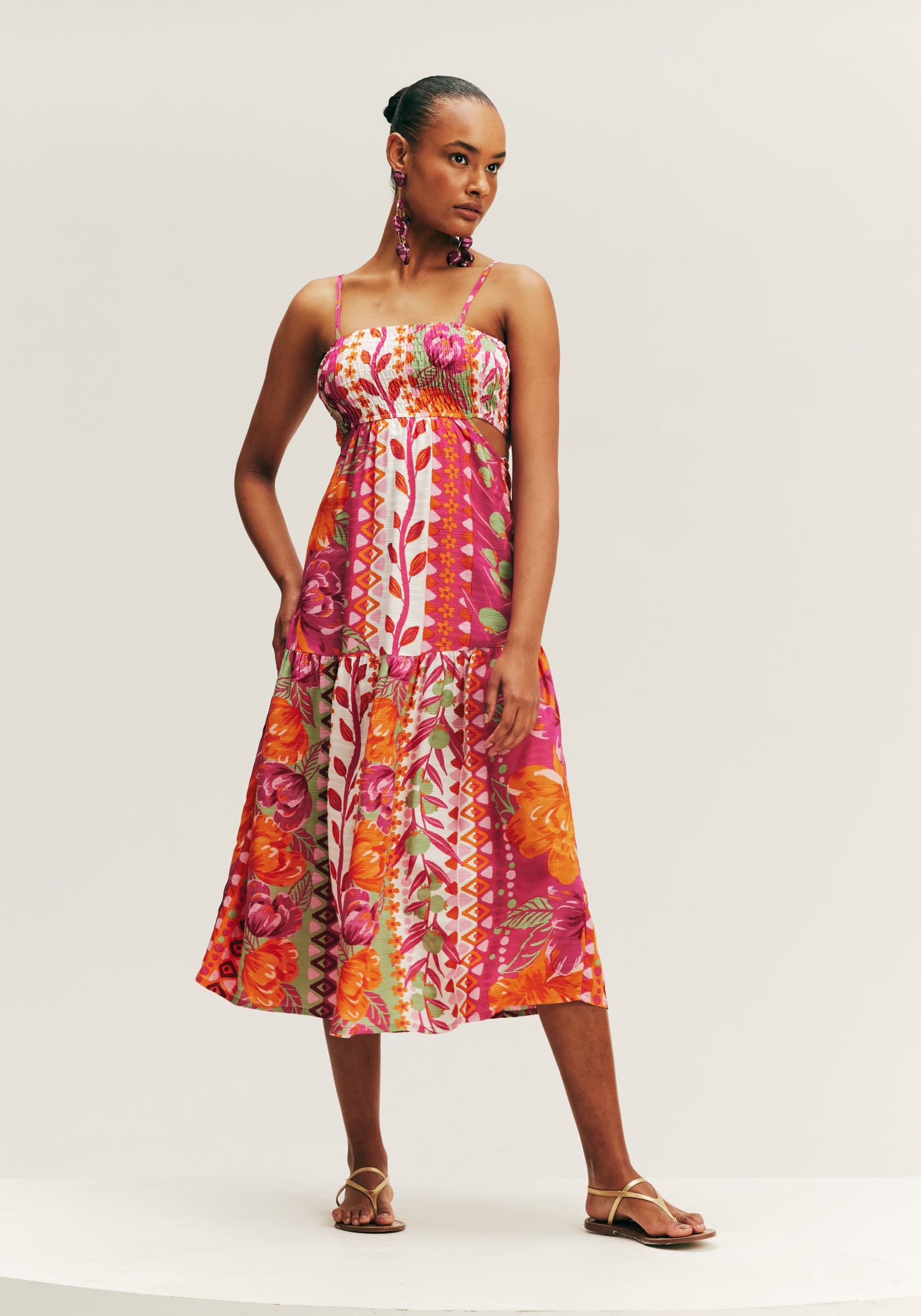 O Vestido Midi é uma ótima pedida para o verão! A estampa Floristaé romântica e reúne diferentes tonalidades e motivos florais.