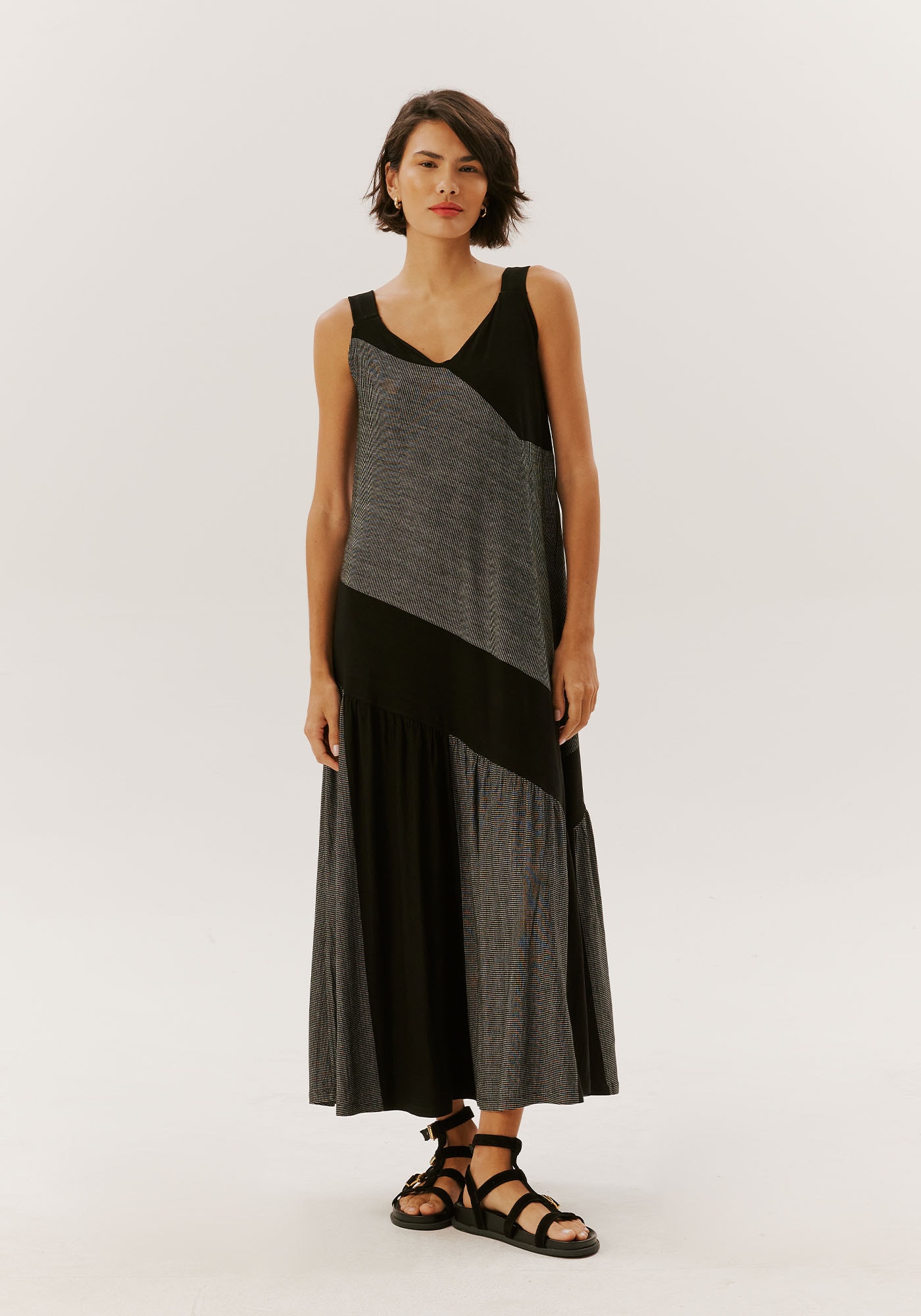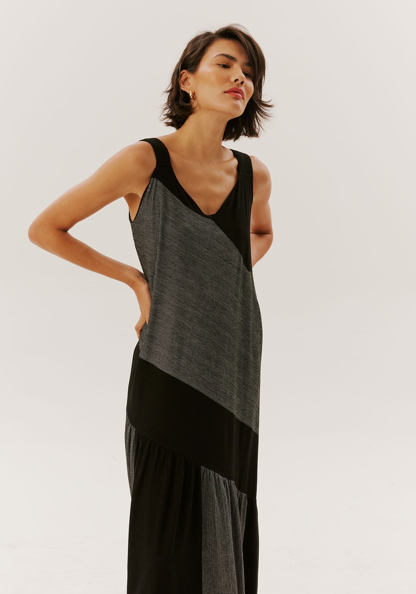 Vestido midi amplo econfortável, confeccionado em malha, com suave decote V e alças largas para umtoque descontraído. Destaca-se pela maria irregular ao final do comprimento,adicionando um charme único à peça. Ideal para um look casual e elegante, proporcionandoconforto sem perder o estilo.