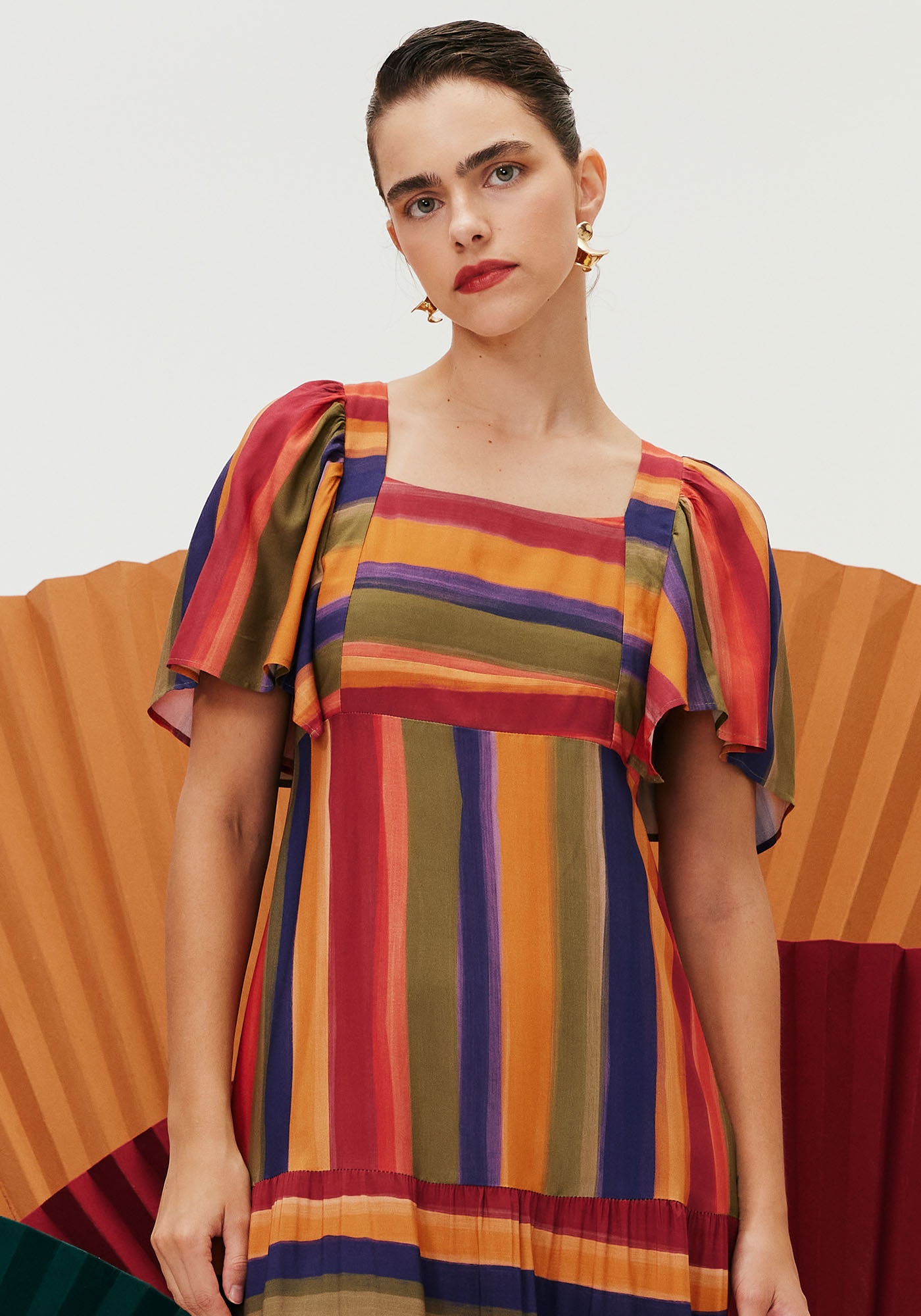 O vestido midi é puro charme eencantamento. Confeccionado com tecido viscose e decote reto, o modelo possui manga curta mais fluídae recortes no busto. A peça possui shape solto, com bastante fluidez e mariasao longo do comprimento. A parte das costas possui trava com amarração, proporcionandomais segurança no vestir.
