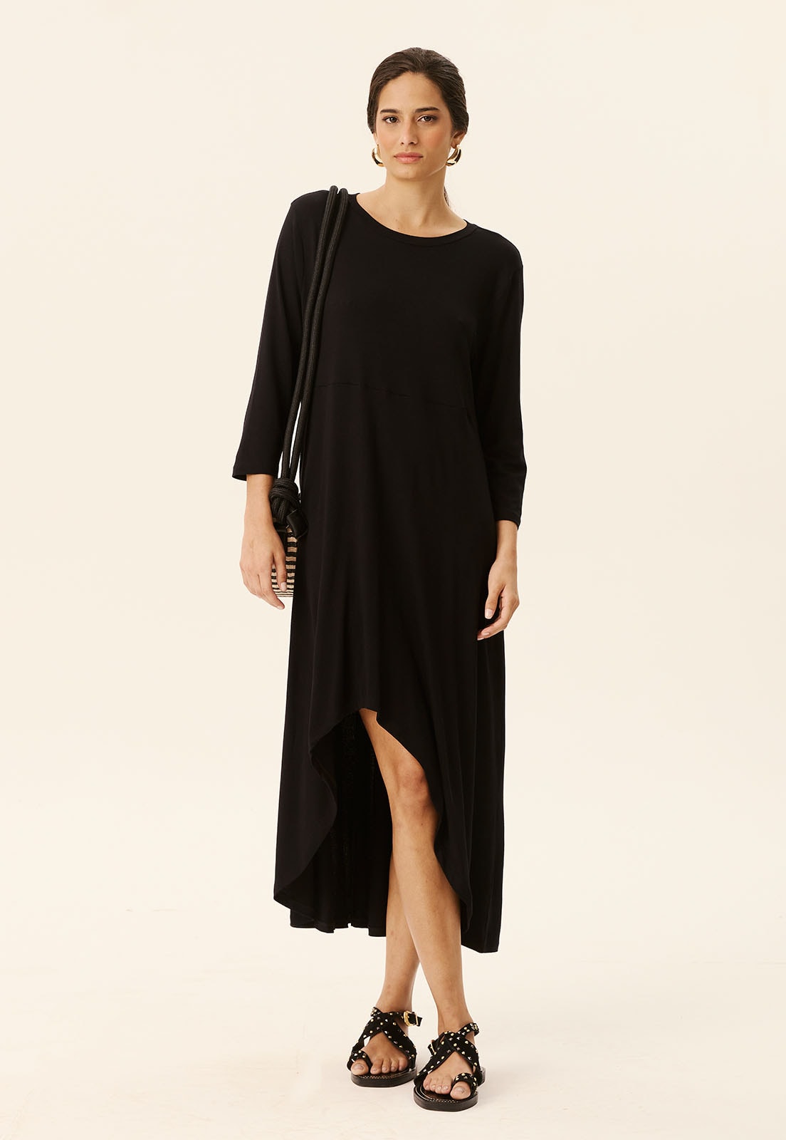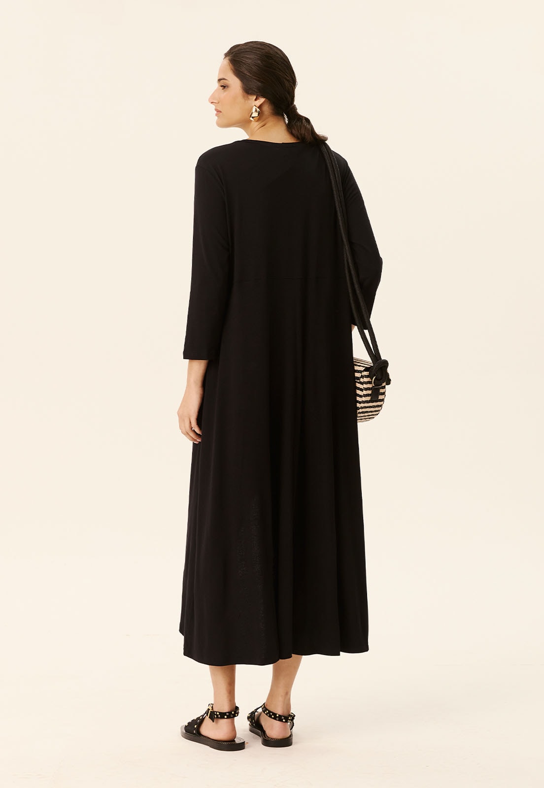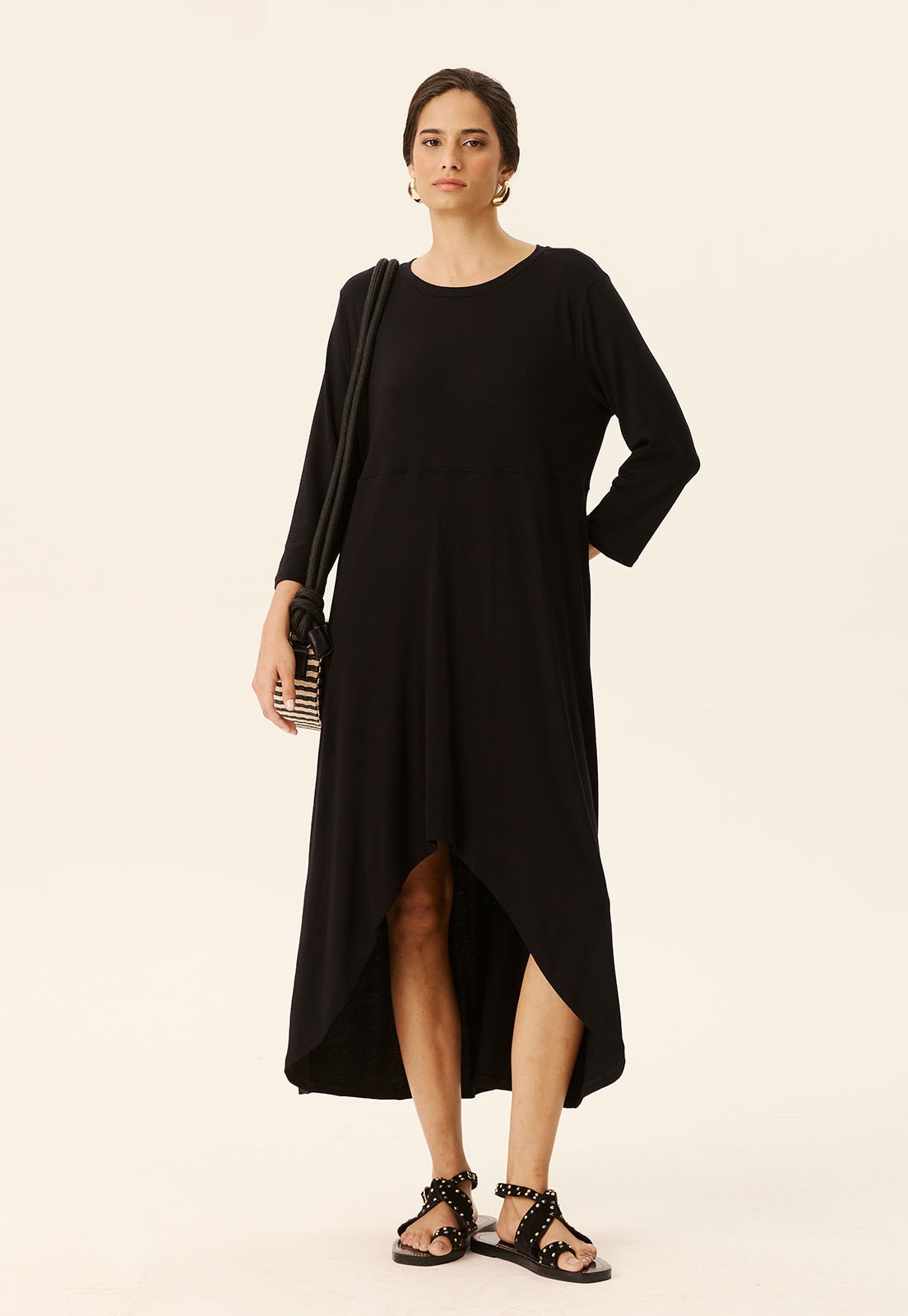 Com modelagem versátil, combina facilmente com sandálias rasteiras para um look descontraído ou com acessórios marcantes para uma produção mais elaborada. Aposte em bolsas estruturadas e brincos para elevar o visual.